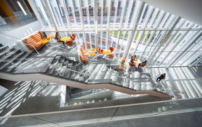 Poised at the eastern edge of the University of Pennsylvania’s campus, this is the first major academic building that announces the presence of the campus within West Philadelphia. As the university’s first cross disciplinary building, the new nanotech Research Facility will encourage the collaboration, exchange, and integration of knowledge that characterizes the study of this emerging field and will combine the resources of both the School of Engineering and Applied Sciences and the School of Arts and Sciences. Defined by a new central campus green, the building ascends as a spiral of research, reaching its highest elevation at the forum, a meeting space that cantilevers over the quad and opens to views of both the city and campus.