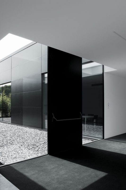 A further contrast is the company’s choice to support a practice that, in the past, highlighted the experiences of leading and courageous Italian companies in the areas where they were established and where they tried to contribute the values of a community, the land, and its people, even before such values were required in employees. Such factory-villages, the so-called “farms” of today, are reminders of the districts in Italy. It is a question of green (trees and mountains), white (snow and light), black (dark vs. artificial lighting), clean air and naturalness that even allows cement to harmoniously blend in with the landscape. It is a question of sustainability, arising from the idea that a work environment can absorb and still produce the energy it needs, in a virtuous cycle: so photovoltaic panels are required on the roof to guarantee the energy we need for interiors designed with work areas alternating with relaxation and leisure areas. In this way, the human potential also promises a combined result based on creativity and efficiency.