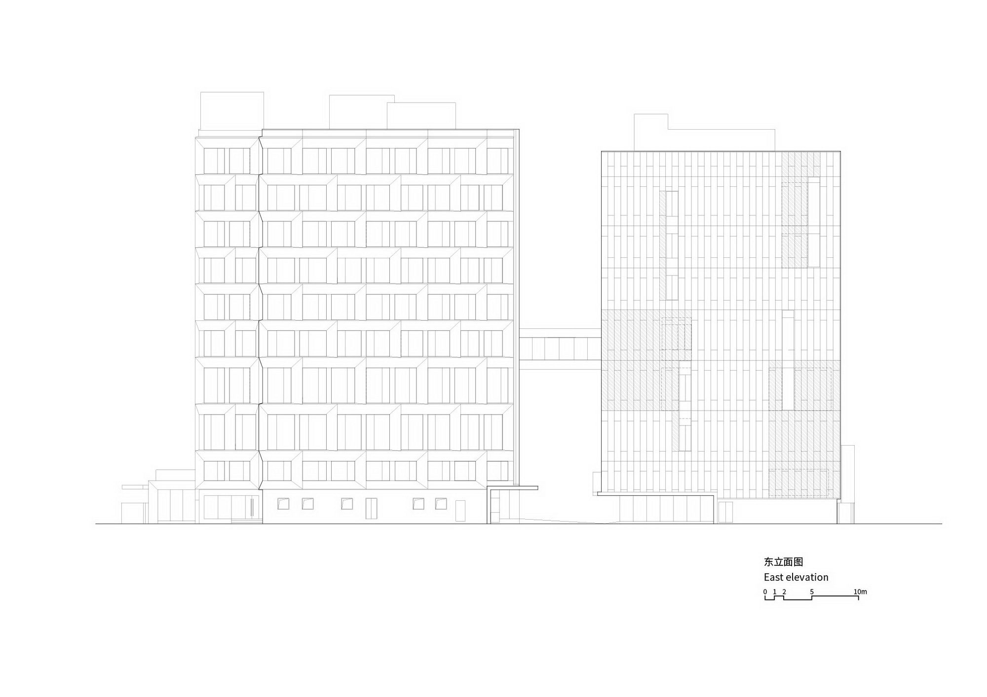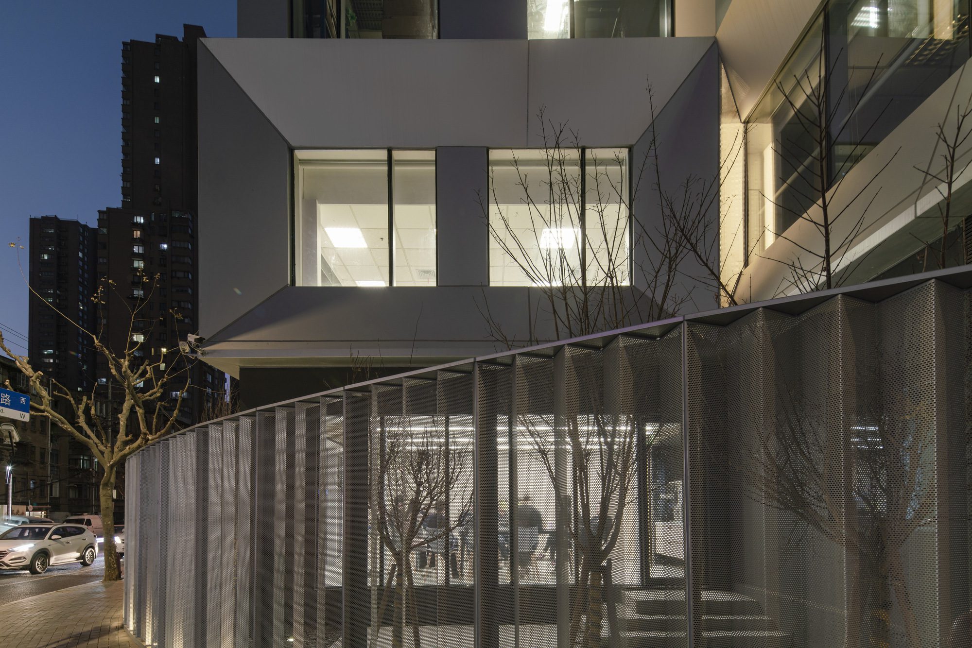 The courtyard façades have been largely preserved, with only detailed refinements. We have only applied economical glass windows and metal finishes to ensure the consistency. Meanwhile, a lightweight and elegant perforated metal decorative curtain wall was designed for the main garage in the courtyard.