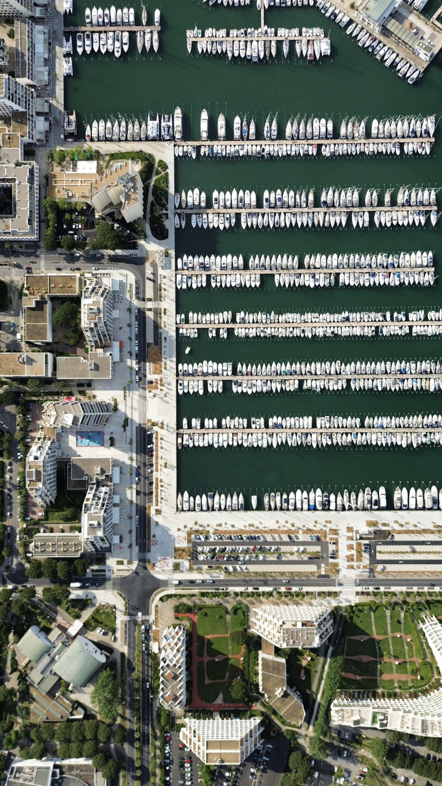 Landscape architect Pierre Pillet designed a forest network of over thirty thousand trees, and fifty years later, an equal number of umbrella pines, plane trees, and white poplars protect the Languedoc city from the assaults of salt and wind. La Grande Motte has undoubtedly become a green and blue city, in touch with the sky, earth, and sea. From a summer resort occupied by vacationers, La Grande Motte is also striving to become a full-fledged city, living year-round in interaction with the neighboring territories of the Pays de l’Or in the Montpellier agglomeration. Nevertheless, the city center, centered around the port, required significant renovation. This is the mission undertaken by the Leclercq Associés agency, which here delivers the first stage of an ambitious project that reconnects with the progressive spirit of the place, anticipating the major territorial and social changes to come.