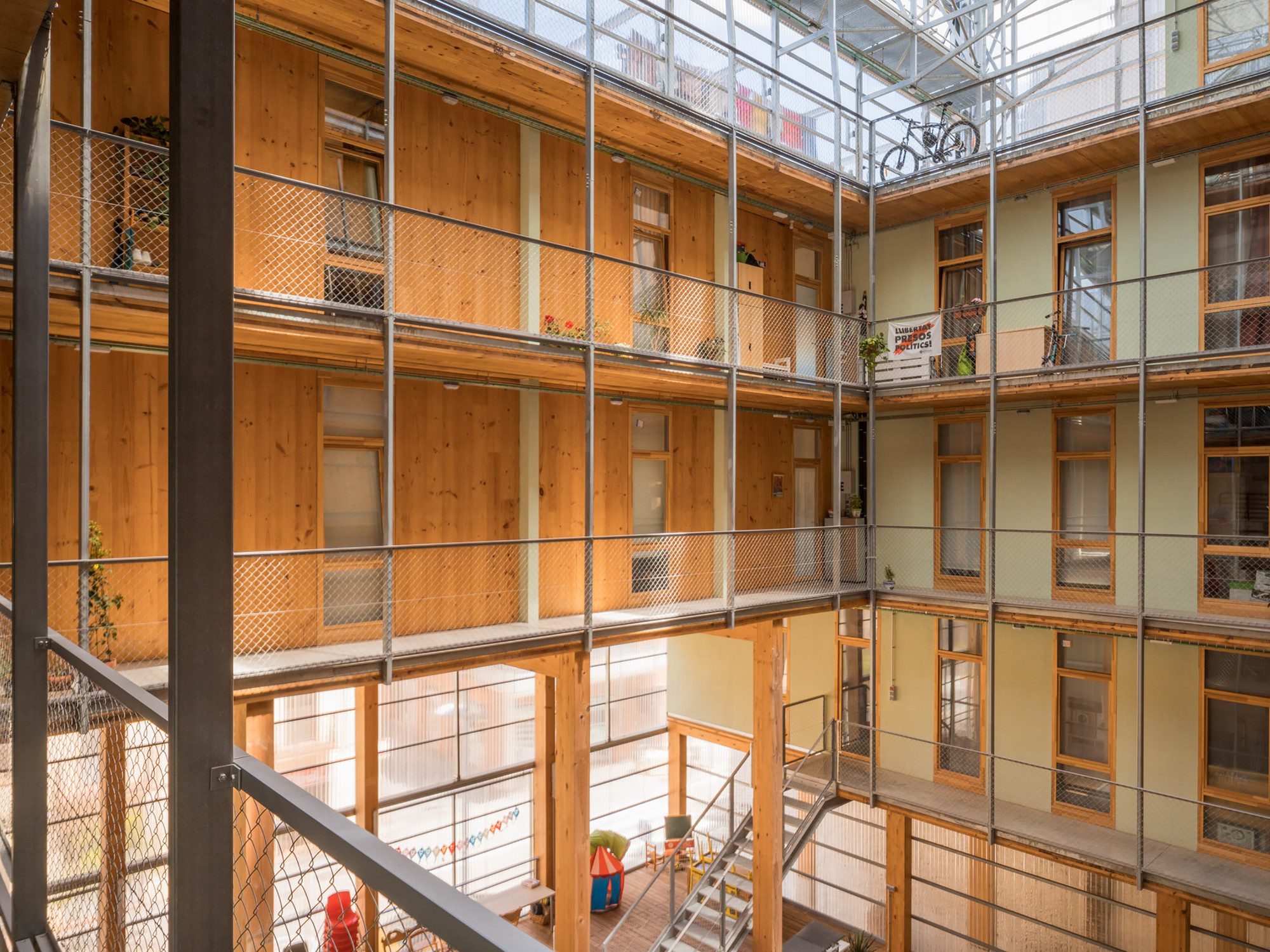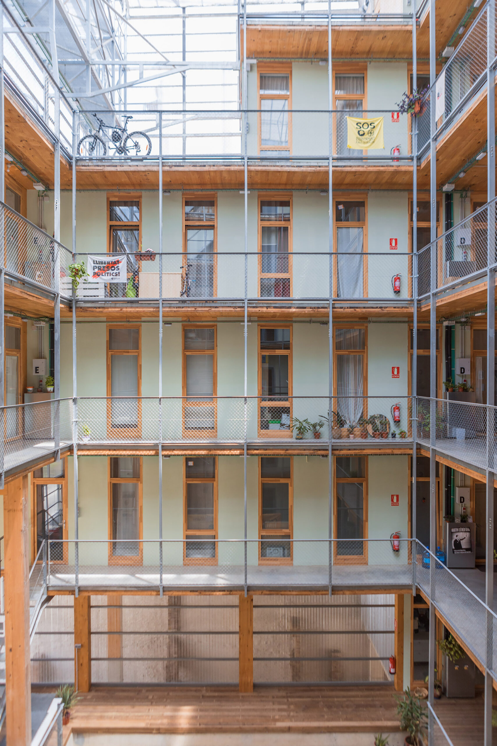 La Borda housing cooperative is a development self-organized by its users to access decent, non-speculative housing that places its use value in the center, through a collective structure. The idea of a housing cooperative was born in 2012 as a project of Can Batlló driven by the community in the process of recovery of the industrial premises, and the neighborhood and cooperative fabric of the Sants neighborhood of Barcelona. The project is located on a public land of social housing, with a leasehold of 75 years. Located in Constitució Street, in a bordering position of the industrial area of Can Batlló with a facade to the existing neighborhood of La Bordeta.