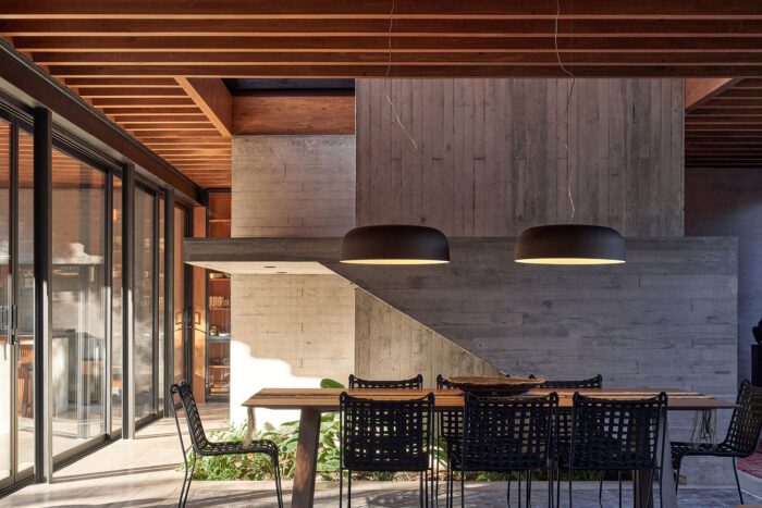 Next, it was decided to elevate the house by one meter so it wouldn’t be buried. Subsequently, three platforms were created to allow for a gradual ascent in functional spaces with the topography.