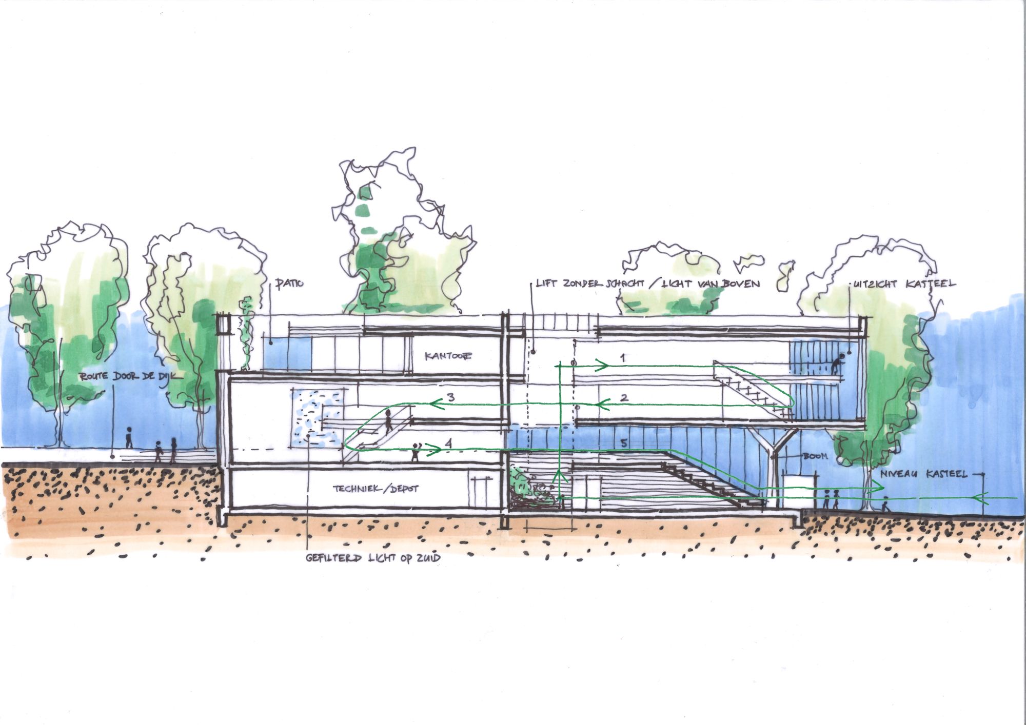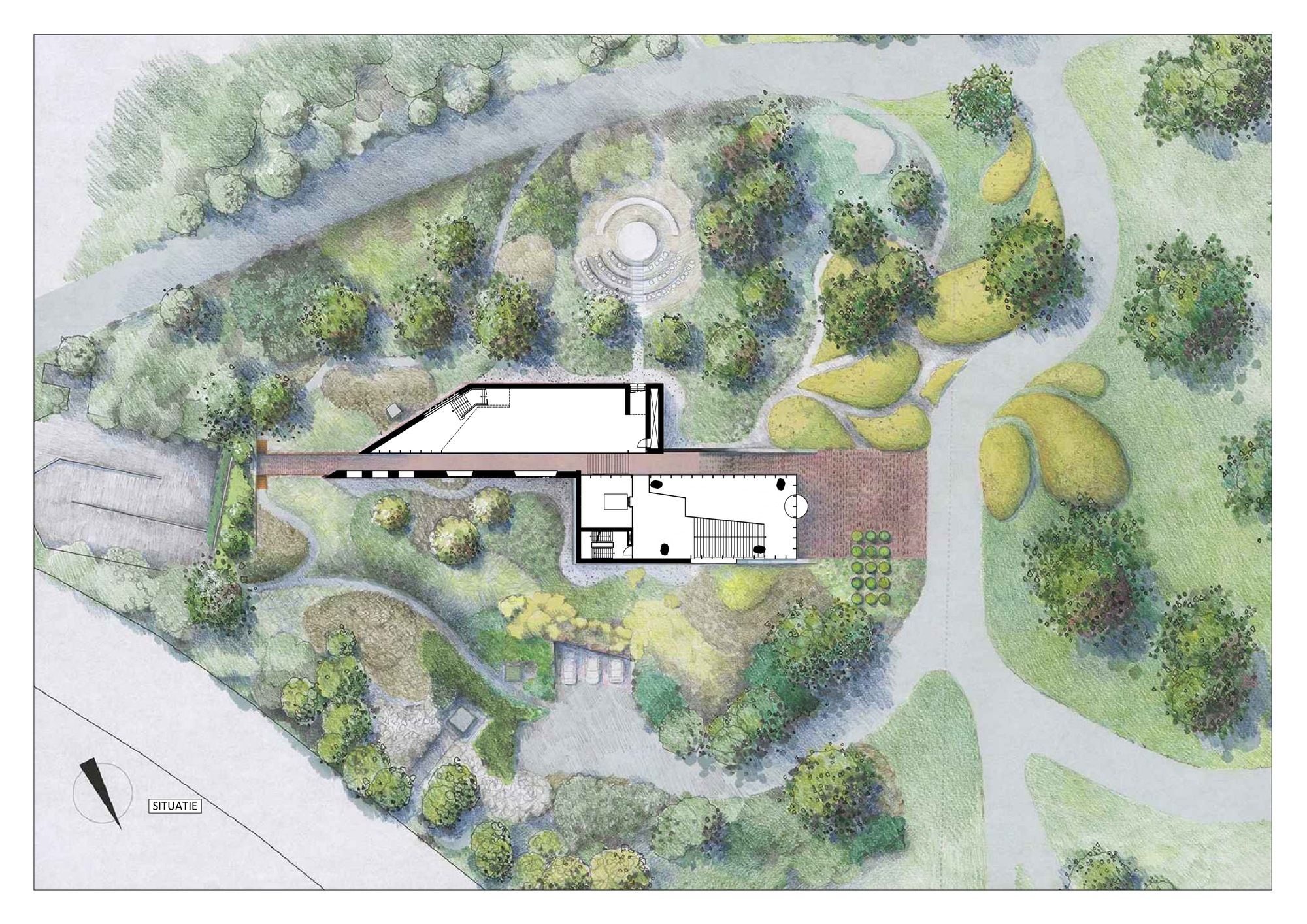 Door het open karakter, de routing en de natuurlijke materialen gaat het museum een duidelijke relatie met de omgeving aan. Kunst en park versterken elkaar in dit daglichtmuseum; de wandelaar geniet van het ingetogen gebouw en enkele ‘kunstwerketalages’ en de museumbezoeker ontdekt de bijzondere collectie zonder contact te verliezen met de aanwezige natuur.