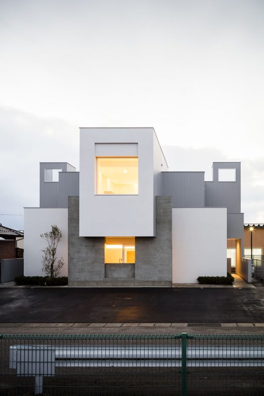 In such conditions, I came up with the architecture that would bring out good living environment while laying out the volumes of the requested shop and of the residential part in an appropriate proportion. The building is composed of symmetrical volumes for which the proportion, openings, and materials have been carefully considered. The dynamic form creates a new façade in the streetscape.