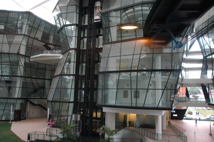 The buildings of the Lasalle College of the Arts are distinguished by facets of glass on the inside, and an external cladding made of stone and aluminium. They are linked by an integrated atrium and sky bridges. An innovative roof structure covers the entire site seamlessly. The entire campus is a living sculpture and contemporary architectural masterpiece that serves as a major landmark within the cityscape.