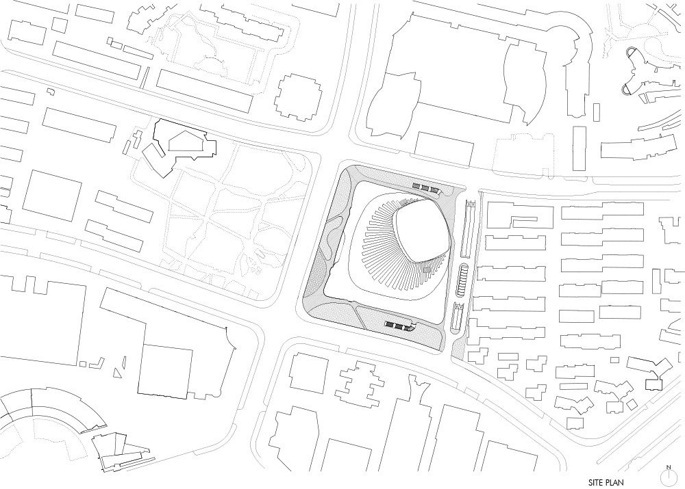 The form is subtly organic. A tower form rises from a sweeping skirt of a podium. It has been suggested that this building is in some way bringing femininity to the tower form. It is difficult to see how this could be so. The fashion industry is itself quite a masculine field. Fashion may seem a feminine interest, but it is filled with men designing clothes for women to be seen in. There is no judgement here- do not misunderstand me- but the fact that a phallic tower holds inside it one of the headlines of the fashion industry, does not feminize it.