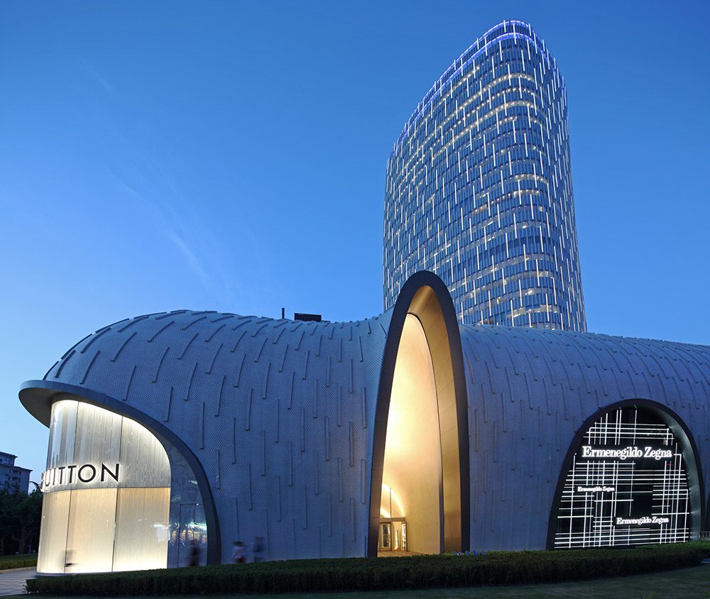 Before you, you see the new 24- story flagship store for design firm Louis Vuitton, designed by Japanese architect Jun Aoki. To be called L’Avenue Shanghai, the new store will be the largest LV flagship in the world.