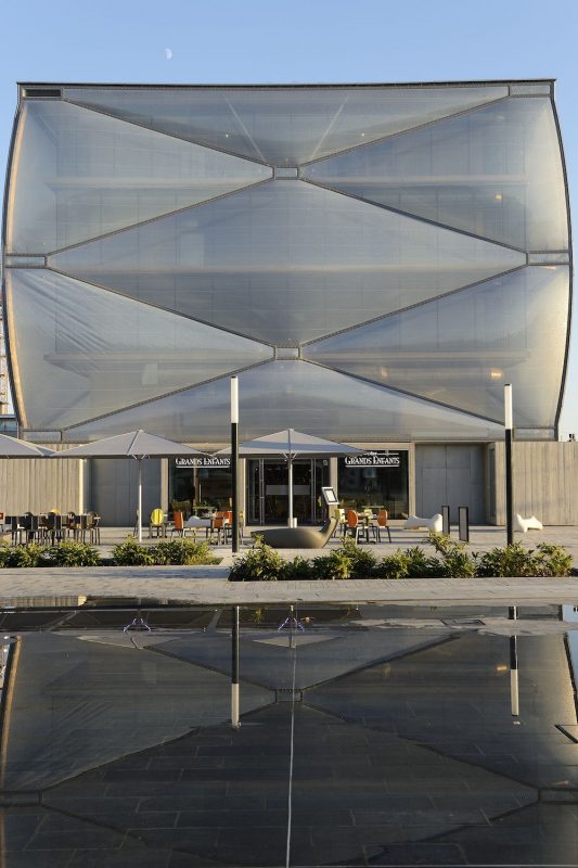 Le Nuage Fitness Center has gained recognition owing to it cleverly devised inflatable “skin”. It is ‘the first inflatable building in France’. The sense of aerial lightness and transparency for the air-filled bubble in the distinctive facade, were fashioned using ETFE. Starck has bravely experimented with innovative architectural methods to generate a ‘new generation’ environment.
