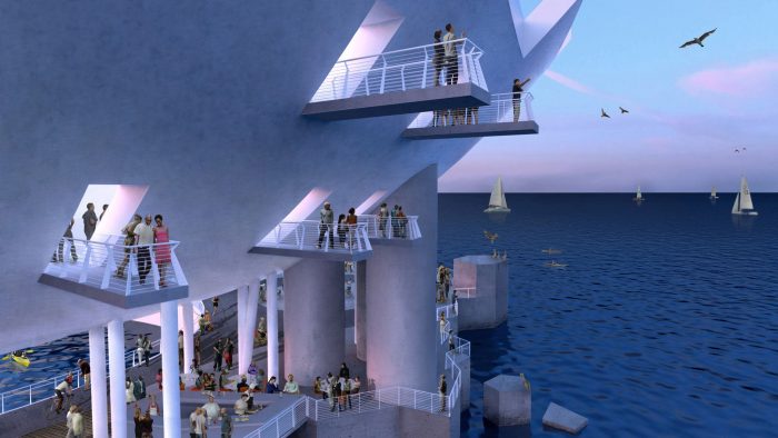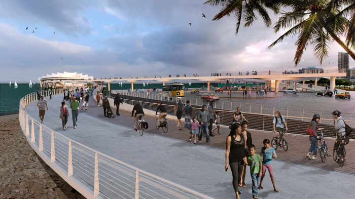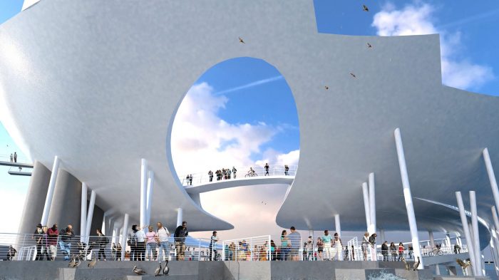 Michael Maltzan Architecture proposal titled “Lens” reflects on the relationship between the pier and the underlying bay beyond. Aspects of the circular looping design include multilevel vantage points of the bay as well as paths for walkers, bikers, and tram riders, in addition to underwater technology that would enable visitors to see and hear marine life in the bay. Another proposal includes elevating of the sea floor to create an inter-tidal area where birds and marine life could reside. Scientists, oceanographers, and environmental research teams are all working on the project, but many can’t help lamenting the lack of consultation before Maltzan’s proposal was selected. More about the project comes from the architect after the break.