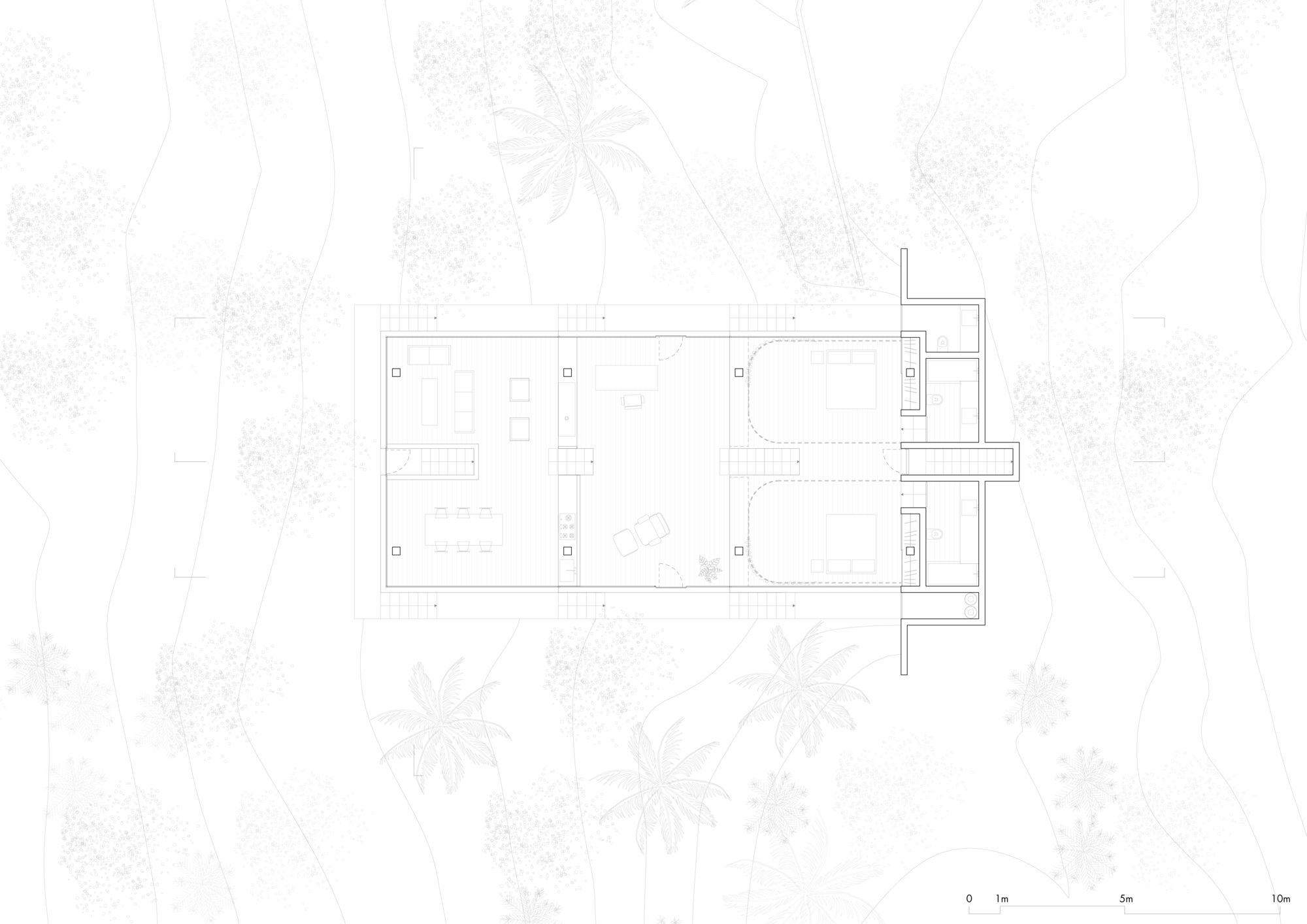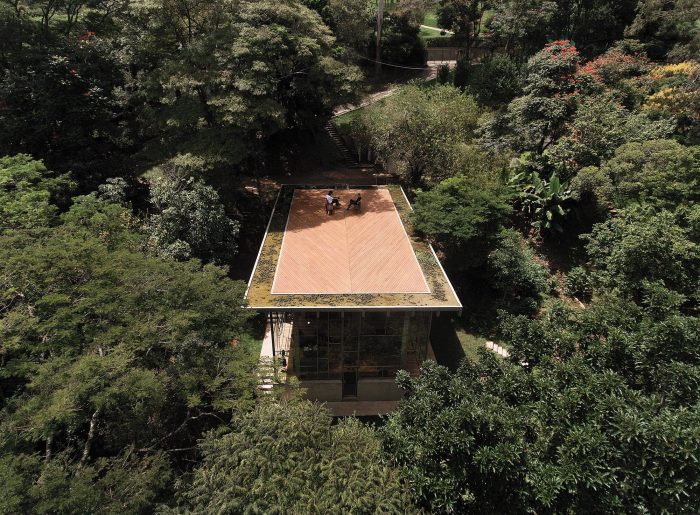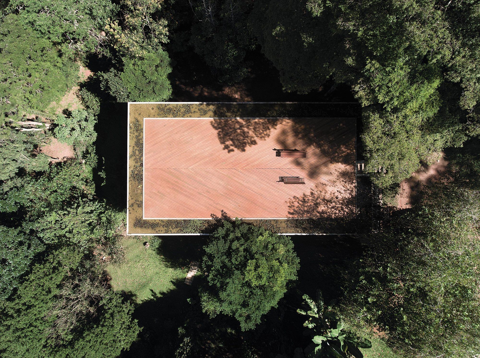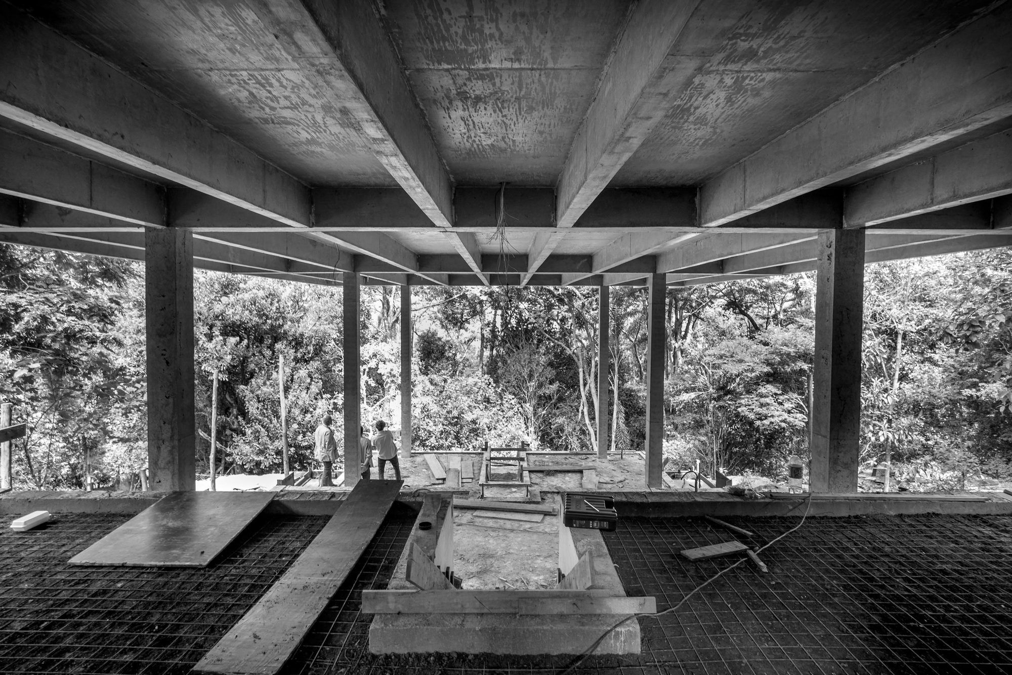 When in the summer of 2014, founding members of Atelier Branco, Matteo Arnone and Pep Pons were approached to design a leisurely retreat in the small town of Vinhedo, the brief posited that the house be able to accommodate at least two kind of needs: the need for a place to read, immersed within the site’s vibrant vegetation; the need for a place to think, reposed under the placidness of the area’s boundless subtropical skies. The client, a left block activist against Brazil’s military dictatorship in his youth and now renowned scholar of the history of political thought, had conceived of the house as a temporary haven between São Paulo and Campinas, at which the State University he held teaching posts since the beginning of the nineteen eighties. It was thus neither to be a permanent place of residence nor a holiday home as conventionally understood, but a place of reverie and contemplation, occasionally of work, away from the bustle of Brazil’s hectic metropolitan life.
