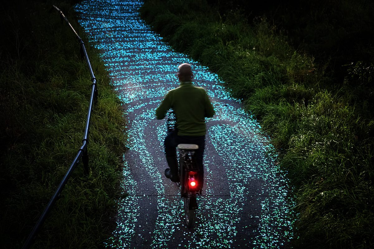 Studio Roosegarde designed this bicycling path as a tribute to Van Gogh on his 125th death anniversary in his hometown, Eindhoven. The solar-powered LED lighting produces amazing blue and green twinkling stars on the bike track.