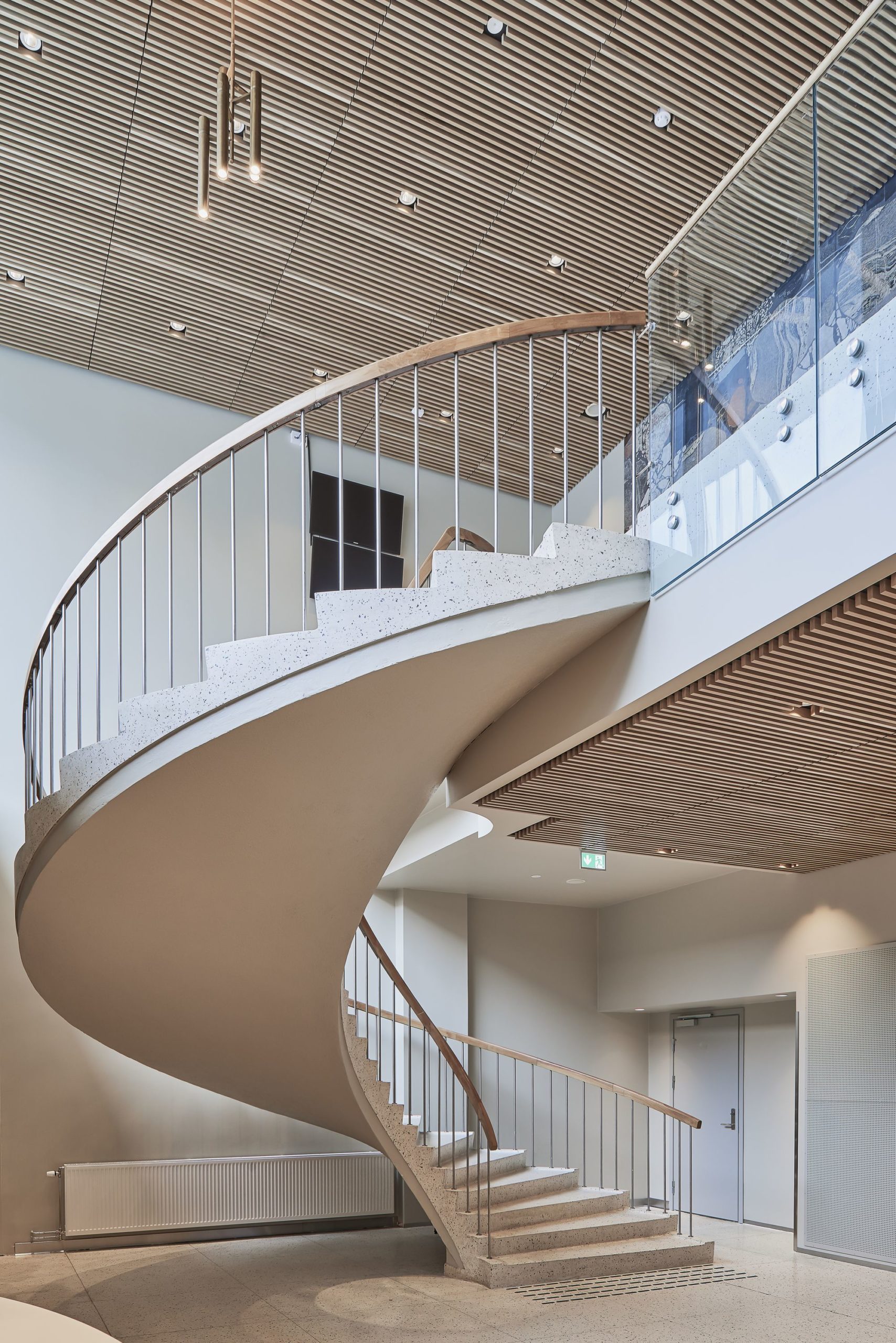 The Lillehammer Cinema added two new auditoriums and renovated its existing circulation space. One auditorium is integrated into the existing building structure, and the second is located below the art garden, between the two existing buildings. The entrance façade is renewed to compliment the style of the original building and brings to front a wall integrated with art by Odd Tandberg. The key concept is to bring back the foyer as an extension of the plaza in front of the Cinema, creating a stronger connection between the city and the foyer, as Viksjø originally had imagined it. With this, Tandberg’s wall art in the foyer is again part of the city.