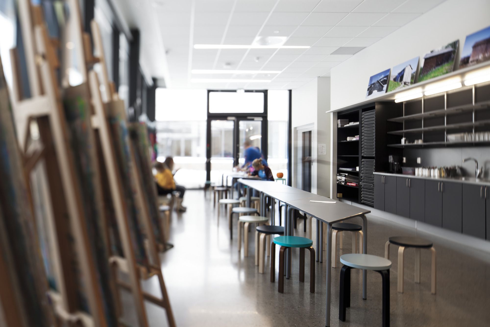 The expansion of the Museum is created on the idea of art hovering above a transparent base. The new space houses a children’s workshop at ground level with floor-to-ceiling windows and sits beneath a cantilevered hall wrapped in a dynamic metal façade. The circulation through the Museum is significantly improved, with a new connection below the art garden enhancing the visitor experience. The second story gallery is dedicated to housing the works of Lillehammer-based