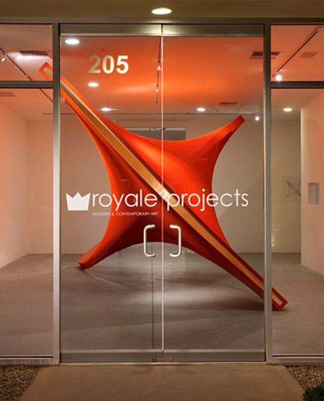 Line to Line, in 2009, a large orange structure resembling the tail of a whale temporarily took up space at the Royale Projects gallery in Indiana Wells, California. Created by architect and designer Phillip K. Smith, III, this temporary installation, named Line to Line, was the first solo gallery exhibition in the Royale Projects gallery.