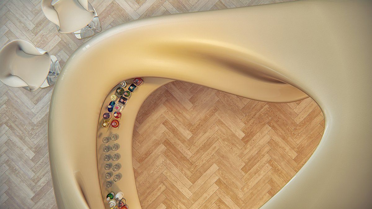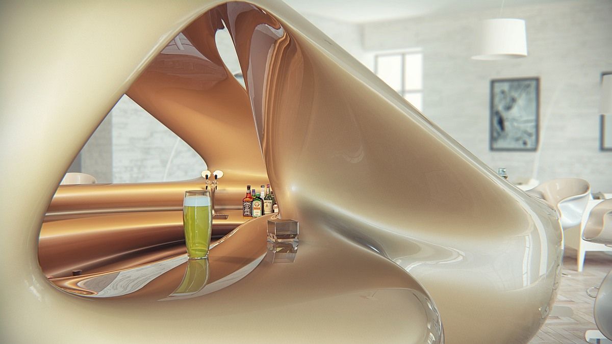 Liubja is like a growing organism which improves functionality and energy of the spaces with its sculptural continuous three dimensional form.