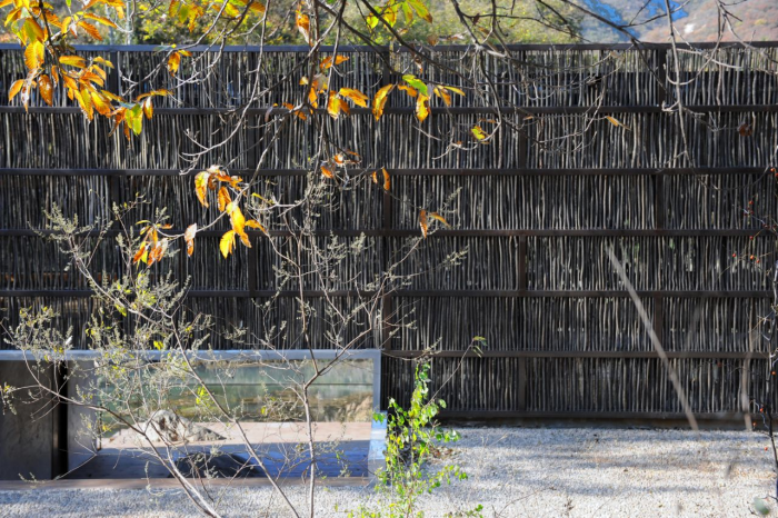 The glass-and-steel structure of the building is softened by the addition of the sticks, which change in color with the seasons and the surrounding mountains.In winter, when the mountain trees lose their leaves, the trunks of trees and the sticks of the building are in the same color and it becomes hard to distinguish between the two.