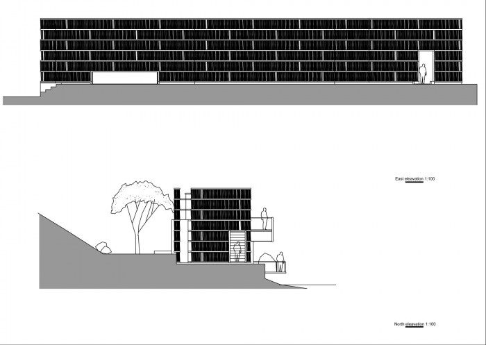 There is no power supply to the library. This means no heating or air conditioning in the building. But natural methods have been applied achieve both heating and cooling to a certain degree. Set at the lowest point of the building, the entrance to the library is close to the lake. In summer, air chilled by the waters surface is introduced into the building through the entrance and naturally rises to escape it via a high opening near the roof.
