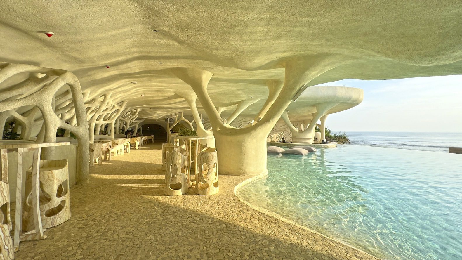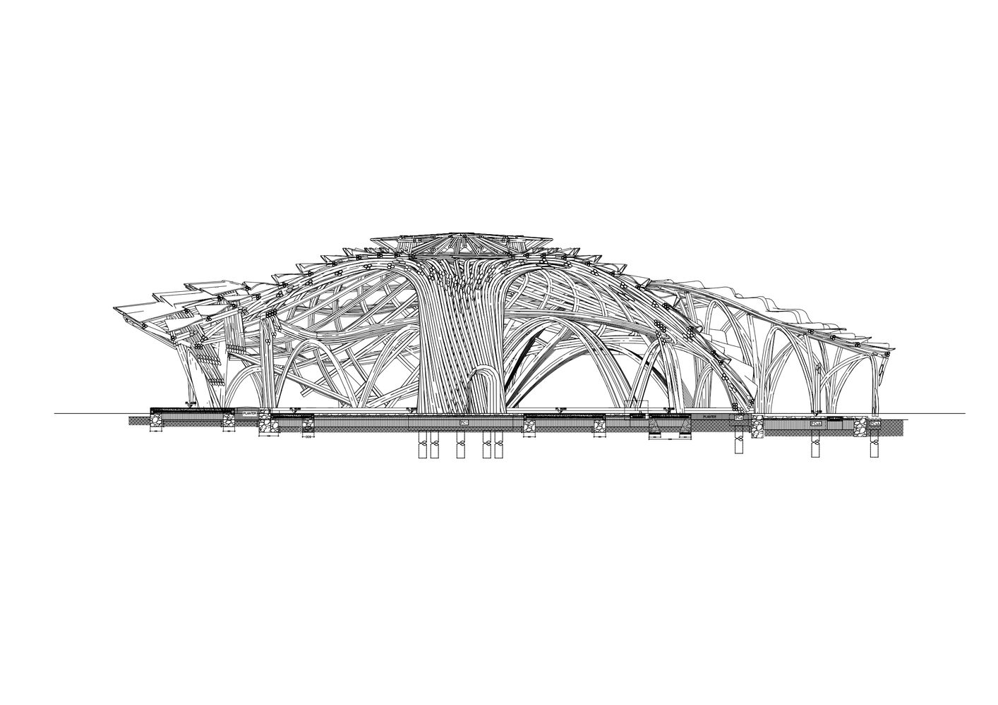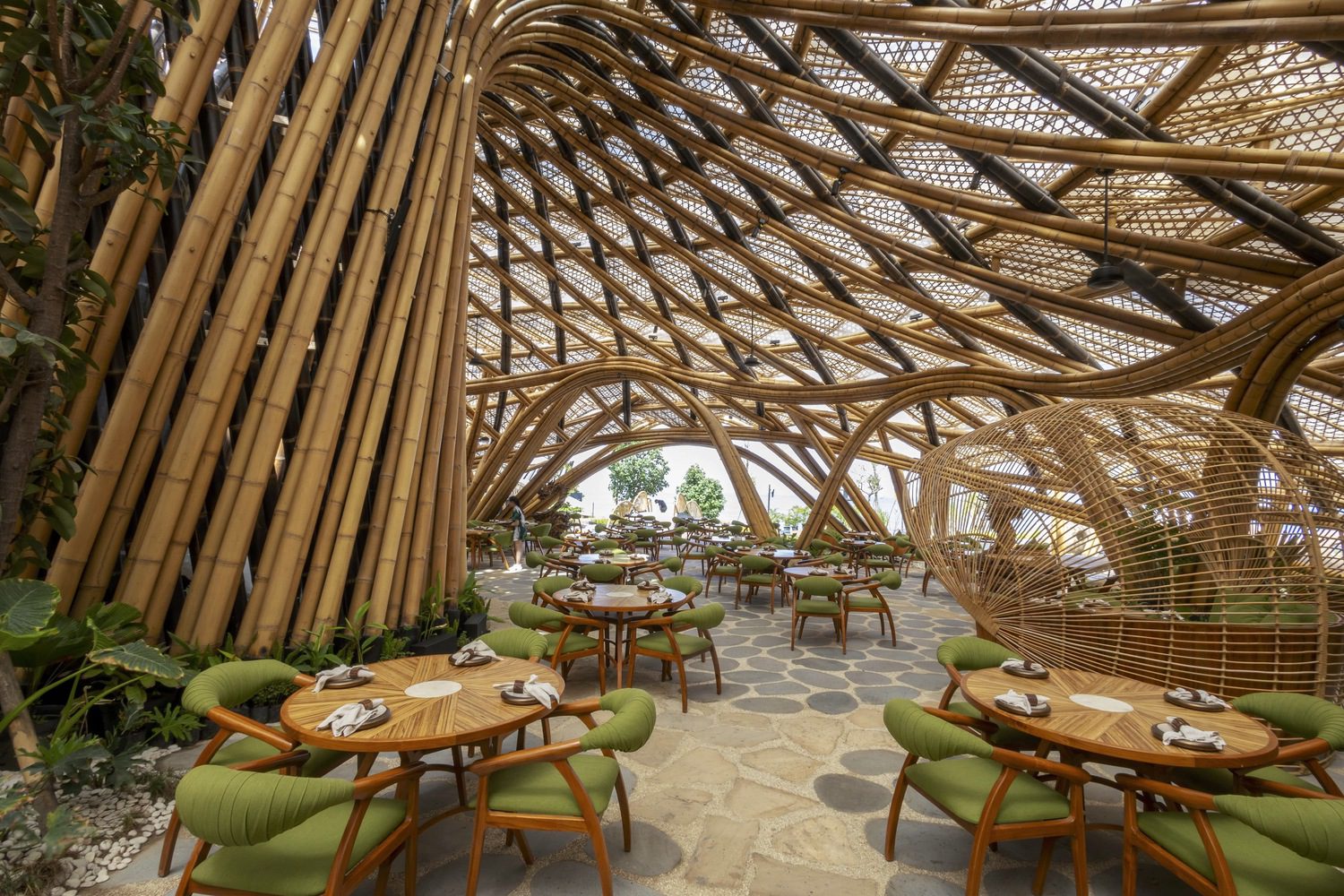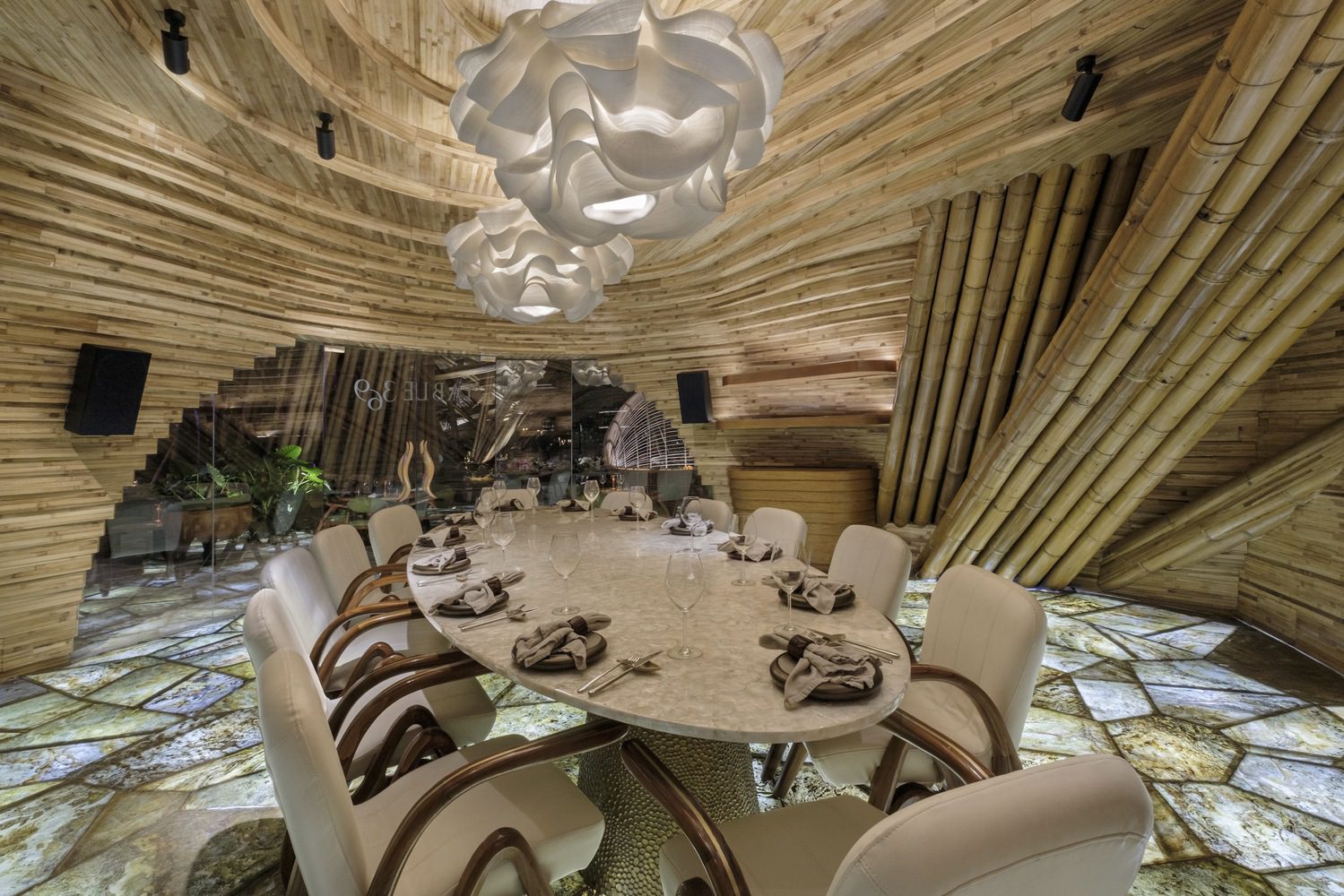 With such complex geometry used throughout combined with forward-thinking ecologically friendly materials, there was a huge degree of research and design that had to be explored. This requires a lot of energy in testing, prototyping, creating confidence, and training construction teams to be able to learn several new building techniques along with the quality control needed to be able to deliver this. In doing so it managed to create the world’s first building to use a combined bamboo and basalt structural system. This can be seen in the beach club double curvature structure. The translucent roof material was also the first time used extensively as a membrane system.