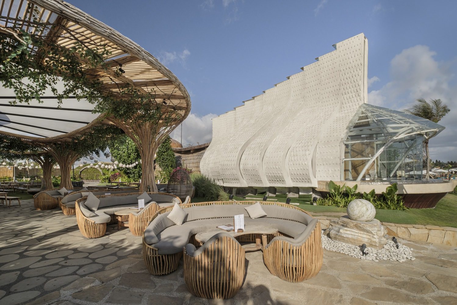 Sitting on the cliffside of Nyanyi Beach, Inside Nuanu Creative City, Tabanan, Bali. Luna Beach Club delivered on the opportunity to create a standout destination for events, dining, arts, and holistic hedonism combined with playful relaxation, where unique iconic architecture overlooks the ocean. The master plan features a series of groundbreaking naturally inspired buildings that create a hub of activity that is conceived according to Fibonacci sequences that connect flow and movement throughout the site.