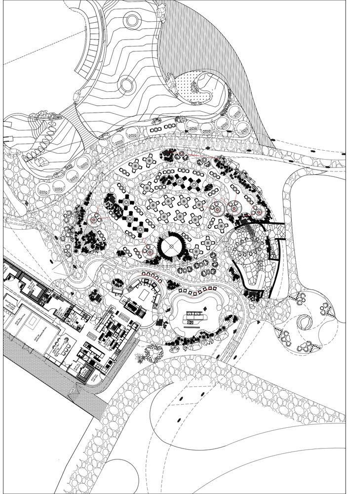 The brief was to a highly iconic beach club and events destination that would create wonderment, inspiration, and a sense of adventure. Central to the complex is the main beach club which appears as a vortex-like structure, built of bamboo and basalt which serves as the main restaurant area, and is covered with layers of woven shades to keep the interior comfortably bright during the daytime and illuminated at night. The masterplan incorporated masculine (TWG tower) and feminine (main dining and restaurant hub) along with a main attractive open space, plus an array of other destinations within such as the ceremonial building, lagoon pool, and slide-down to a cave pool, and club, elevated pods with tunnels, platform nets and a candy bar dome, enchanted gardens, and an outdoor beverage garden and grill.