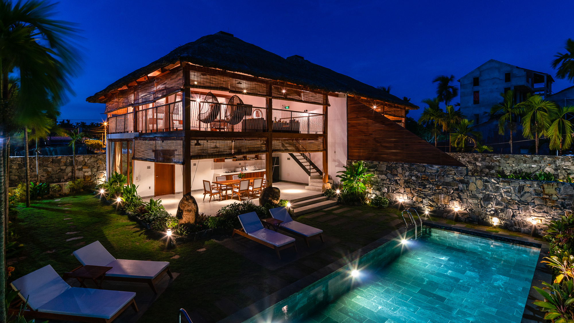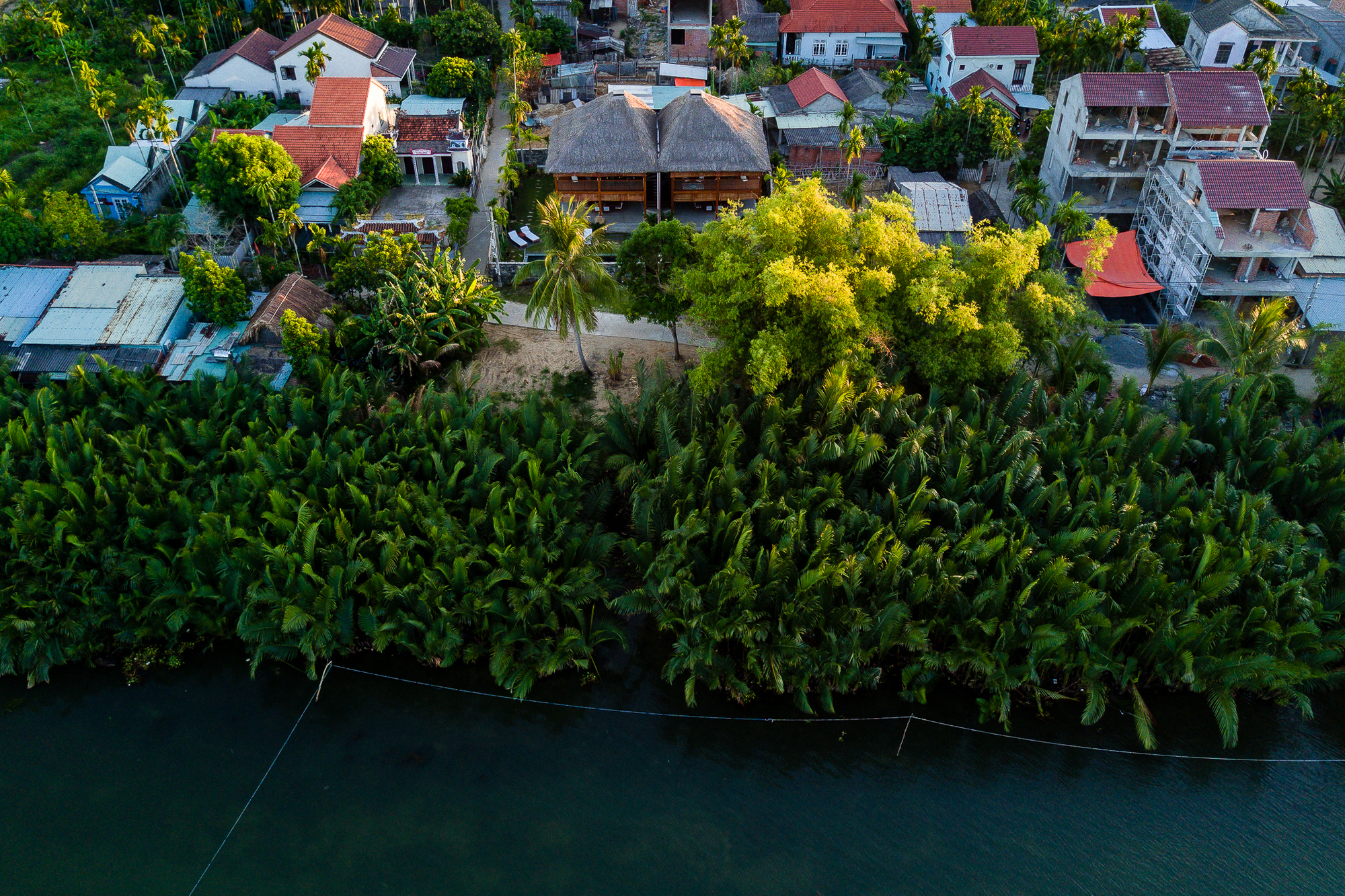 M Villa, This duplex villa is situated on a 600-m2 land plot adjacent to the Hoi An River in Quang Nam Province, Vietnam. The surrounding context is still wild and under-developed, with lots of nipas being the signature tree of the area.