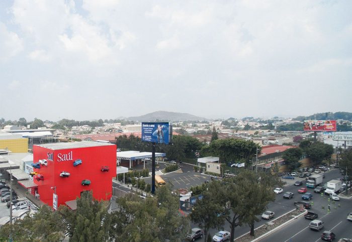 This opaque cube rises 15 meters high above one of the most heavily trafficked highways in Guatemala City. The neutral exterior is studded with cars which act a kind of roadside icon, putting a smile on the faces of drivers as they quickly pass or eternally idle in a traffic jam.