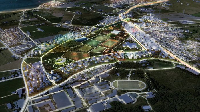 The Danish firm, MVRDV and the Norwegian firm of Space Group joined as a team to envision a future growth pattern for Stavenger, Norway on the southwest coast. The town, which is booming from growth in the off-shore oil business is examining ways in which to achieve sustainable development. MVRDV & Space Group’s plan is one of four plans, the city is considering for the Madla-Revheim area to the south of the main city. The city’s goal of is to develop a sustainable growth model, envision housing and commercial sectors, plan for transportation and provide amenities for residents and visitors.
