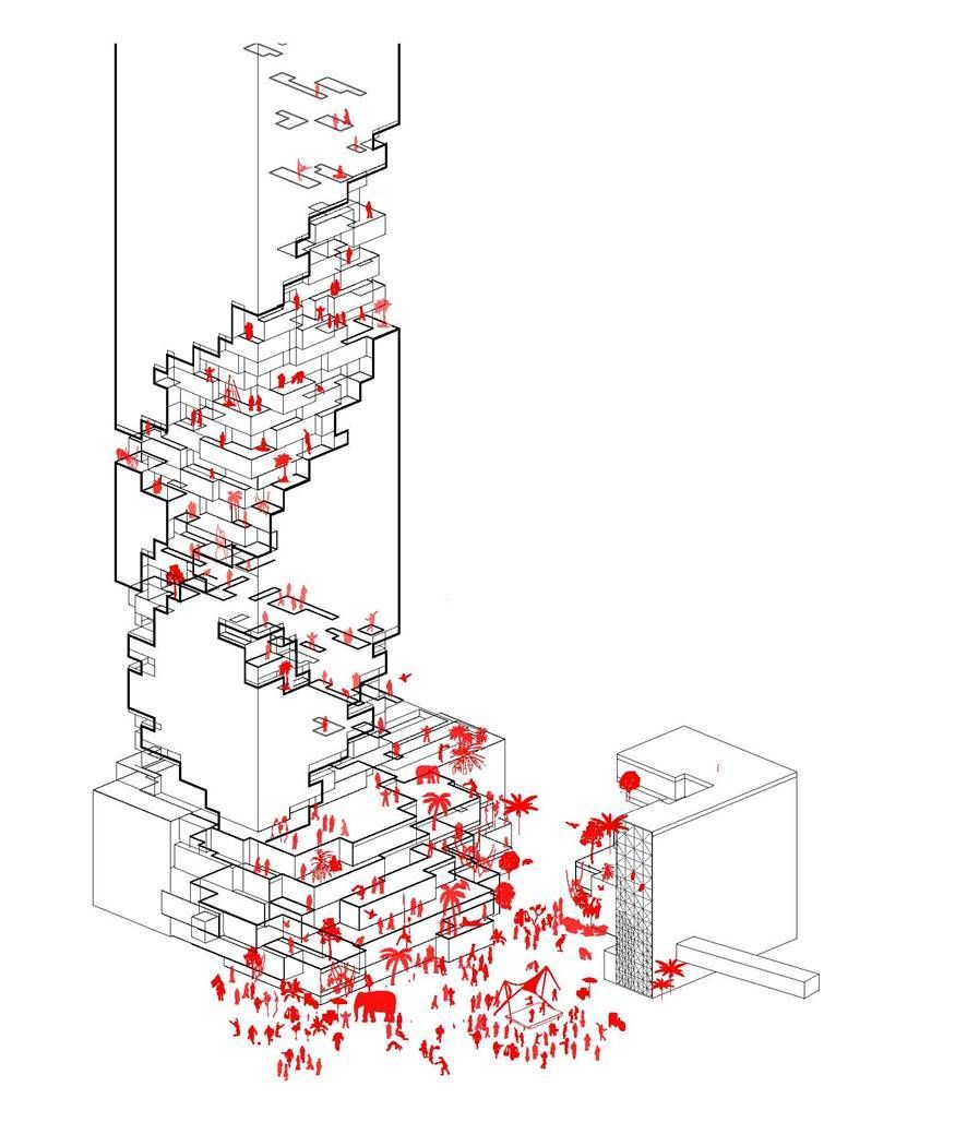 By creating the pixel-imperfection, the protrusions also create balconies with “uninterrupted views over the city as well as larger areas for greenery.” Slated to be completed in 2015, the tower will be featured as a major mesh of mix used facility, for not just its residents, but also the general public seeking to enjoy dining and leisure facilities all around.