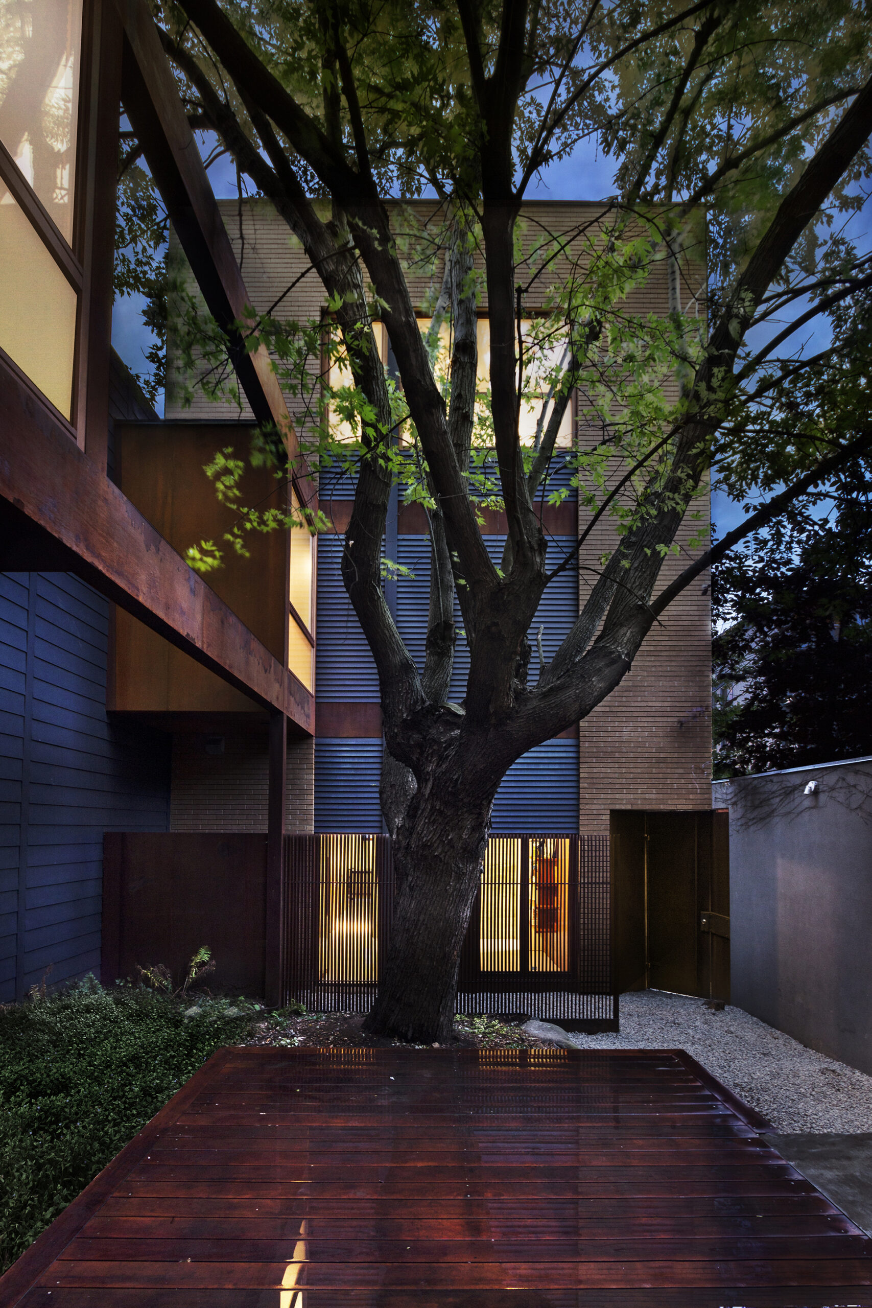 The two vertical houses organized around the century-old maple are a green oasis in the heart of the neighbourhood, despite their high-density character. These are both spacious single-family homes with the privacy families’ demand, and a group of dwellings providing the high density needed to meet 21st century urban needs.