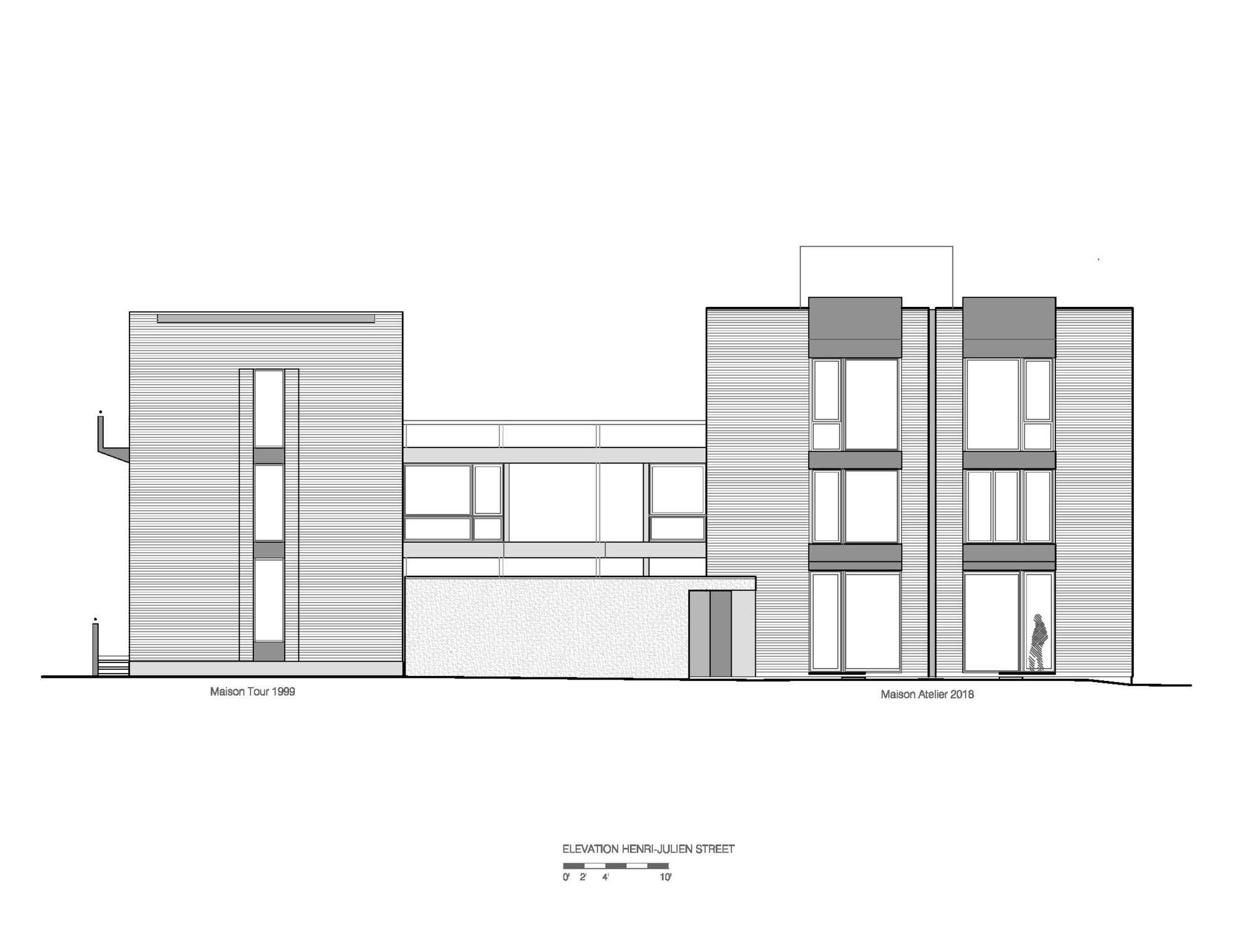 In place of the traditional Montreal plex typology, the project offers a new model of urban housing by proposing the construction of two independent urban residences on the same lot. Each house has its own ground and offers spacious indoor spaces and intimate and private outdoor spaces.