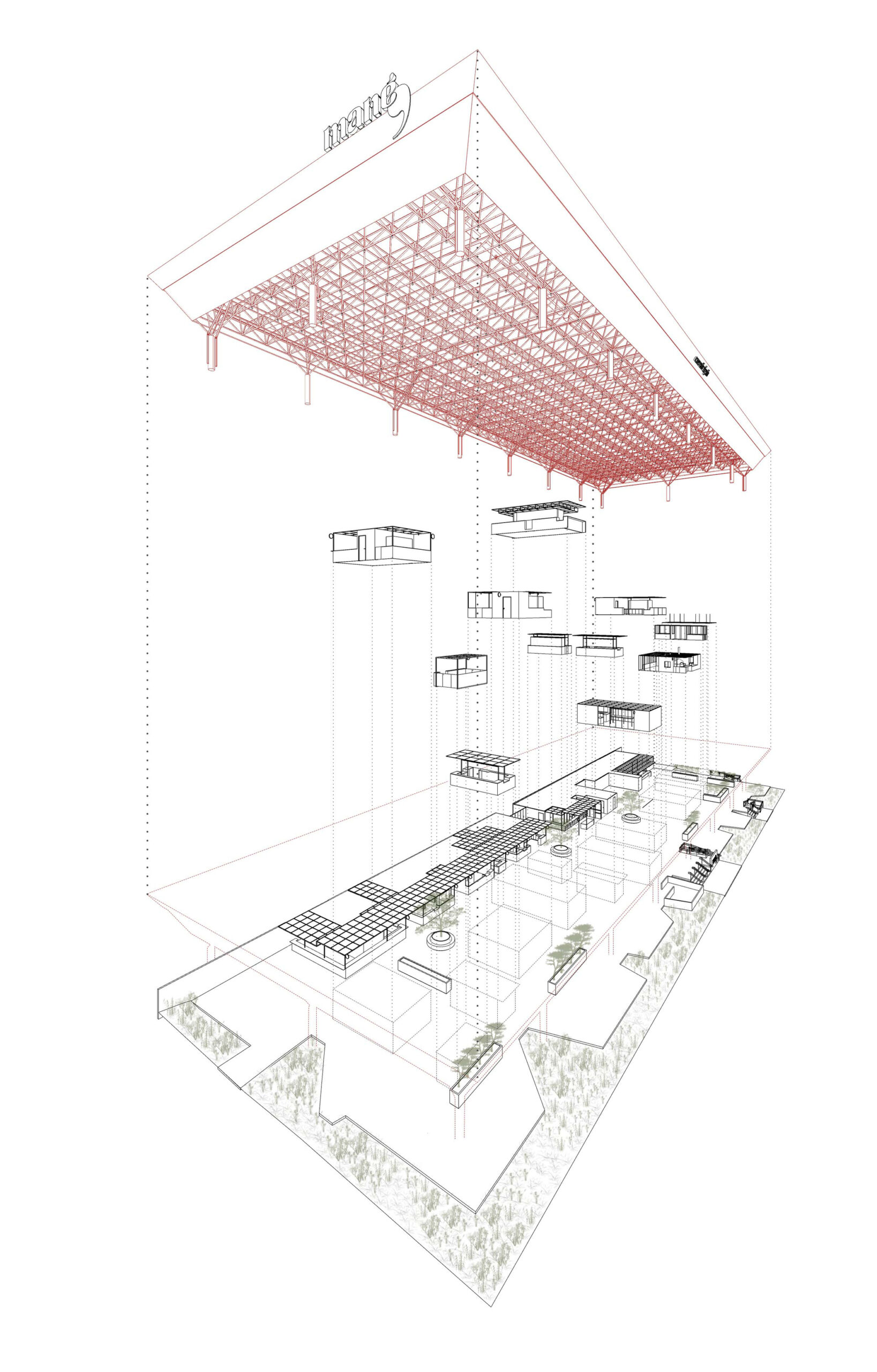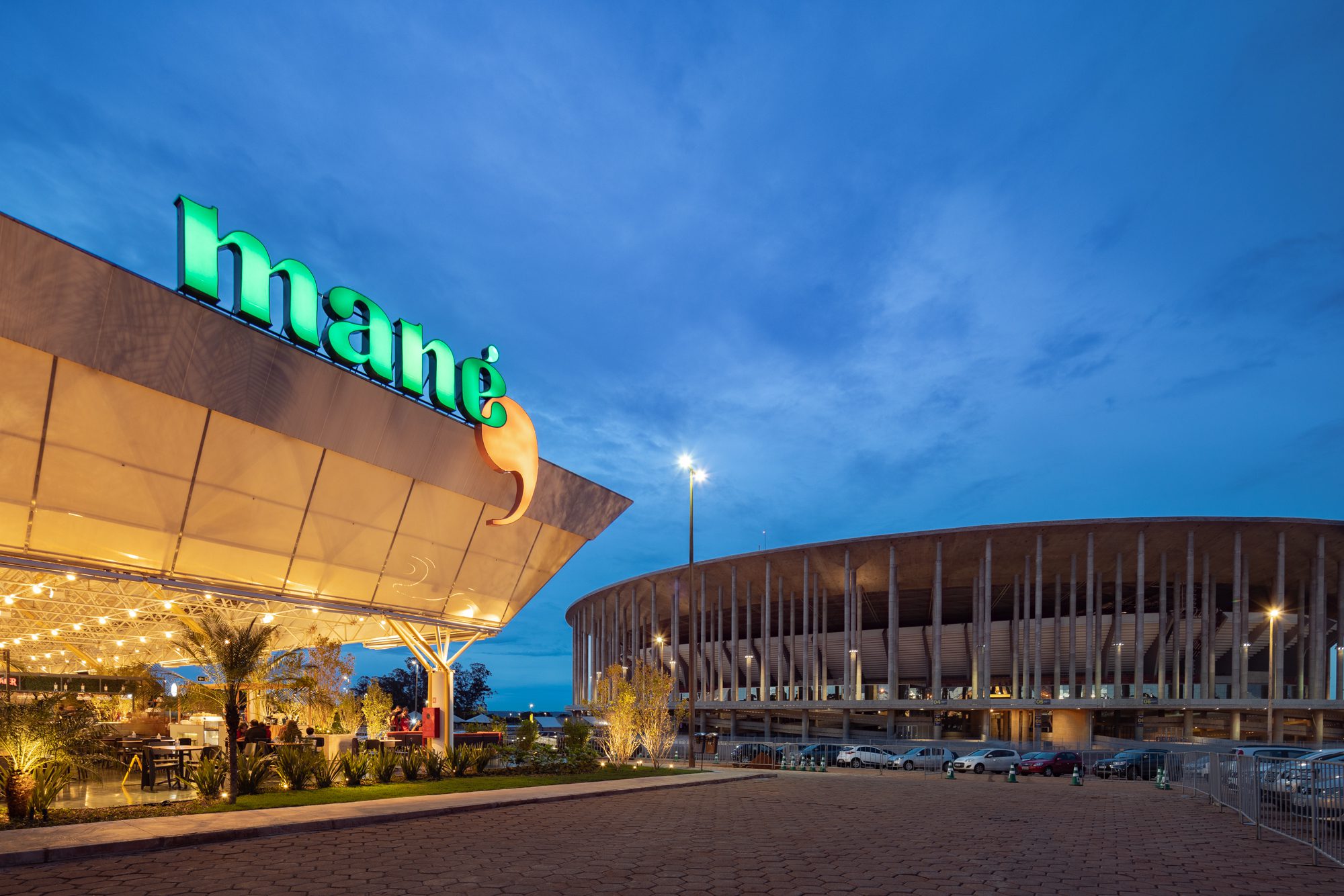 Mané Market, Located in Brasília, between the Mané Garrincha National Stadium and the Nilson Nelson Gymnasium, on the Monumental Axis, the Mané Market project reuses the roof structure of an existing building. The market is a 6 year long temporary installation that will exist until the definitive installation of the future Sports Complex of Brasília at that location, whose construction is scheduled to begin in 2026. Until then, the objective is to take advantage of the existing infrastructure on the site and transform it into a market focused on gastronomy. The existing building was used during the 2007 Pan American Games. However, after that event, its space had been empty and unused for several years.