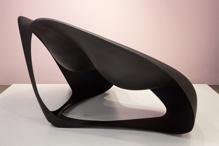 The surface here is the primary focus and how it can be used to create forms and usable volumes. It uses a lightweight aluminium shell to craft and support a two seater. A central axis is maintained along which the form rises to creates armrests along with an element of separation. A Y shape at the back strengthens the form and shows how each part is an integral to the whole. Its black color suggests subdued luxury and the curves convey comfort.