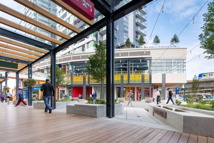 Marine Gateway is a mixed-use development in south Vancouver that has reinvented the concept of transit-oriented development (TOD) to one that is transit-integrated. Unlike typical TODs that are designed around or near a central transit hub, Marine Gateway seamlessly integrates a transit hub into the design of the community itself, creating convenient access.