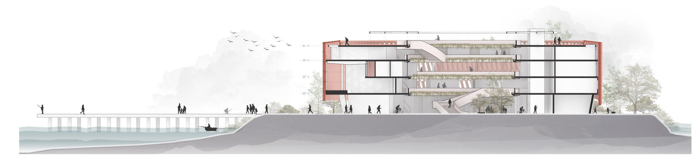 Aside from physically situating MBRIC at the water’s edge, this viewpoint also aesthetically links it to the highland mountain ecosystems crucial to coastline life, the surrounding forest environment, and aquatic life.