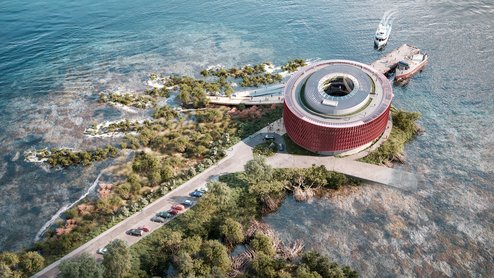 The suggested design is a circular building with a central atrium, reminiscent of the ring-shaped islands found in coral reefs. The proposed plans take cues from atolls, which are nature’s healing reactions to catastrophic disasters like volcanic eruptions and deterioration, both aesthetically and conceptually.