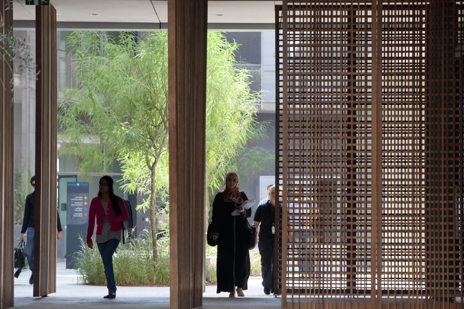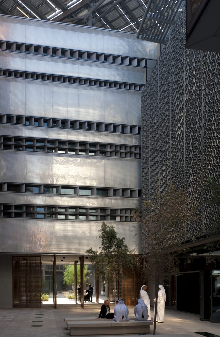 The laboratories and residential accommodation are supported by a variety of social spaces, including a gymnasium, canteen, cafι, knowledge center, majlis – or meeting place – and landscaped areas that extend the civic realm and help to create a new destination within the city. One, two and three-bedroom apartments are housed in low-rise, high-density blocks, which act as a social counterpoint to the educational laboratory environment.