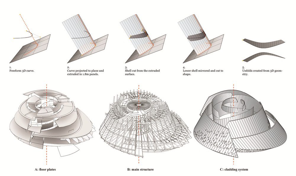 “The discovery center form is inspired by the unique Damascus rose. The shape provides shade and natural ventilation in the building. Its center forms a large communal space.” Louis Becker, Design Director of Henning Larsen Architects
