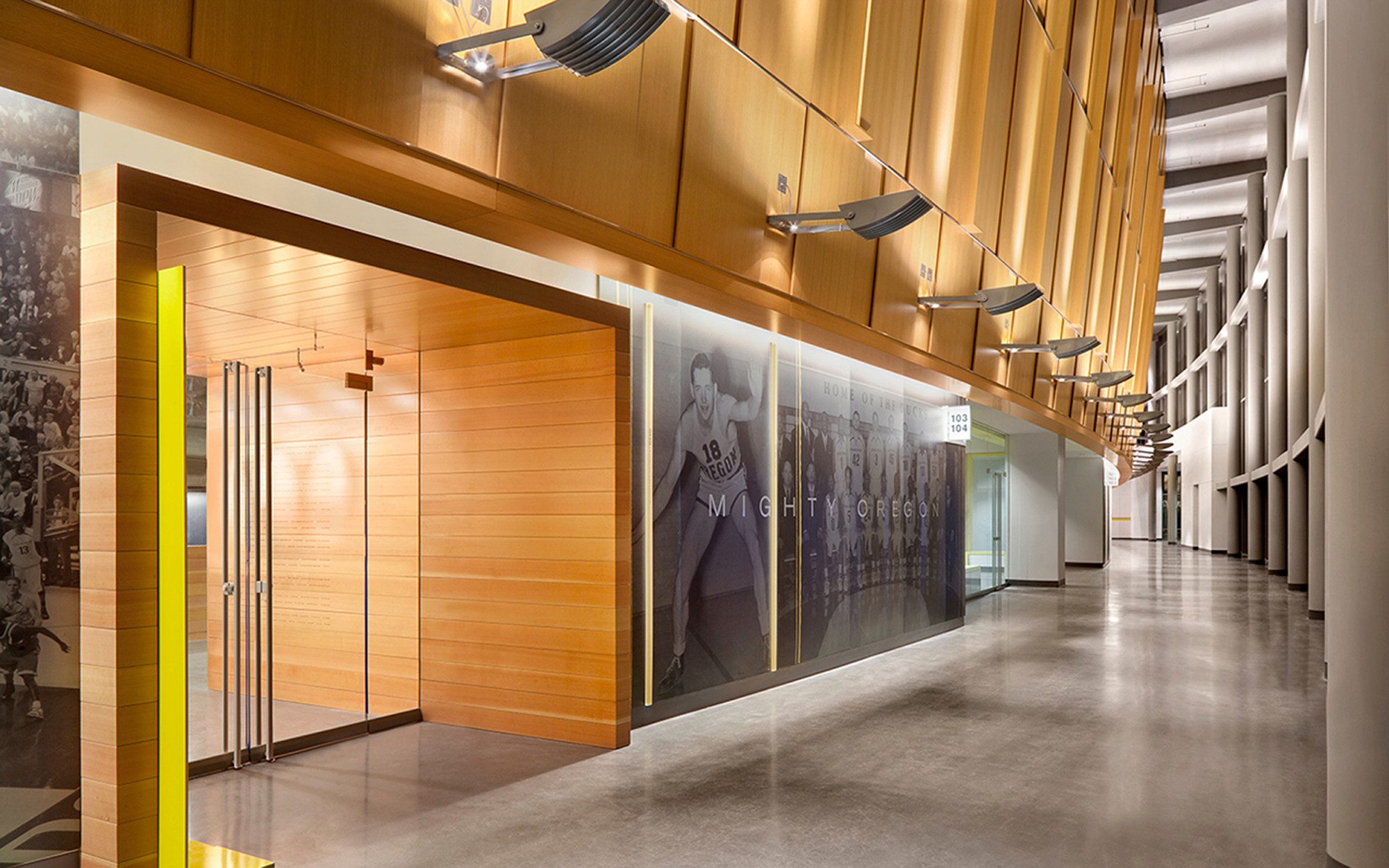 The Matthew Knight Arena is located to form a new east gateway to the University of Oregon campus. Providing a first impression of the University’s distinct identity, the building exemplifies the core values of progressive thinking, education and environmental stewardship of the institution. TVA Architects worked with the State of Oregon SEED program to achieve a 20 percent energy reduction below code for both the Arena and the adjacent Alumni Center.