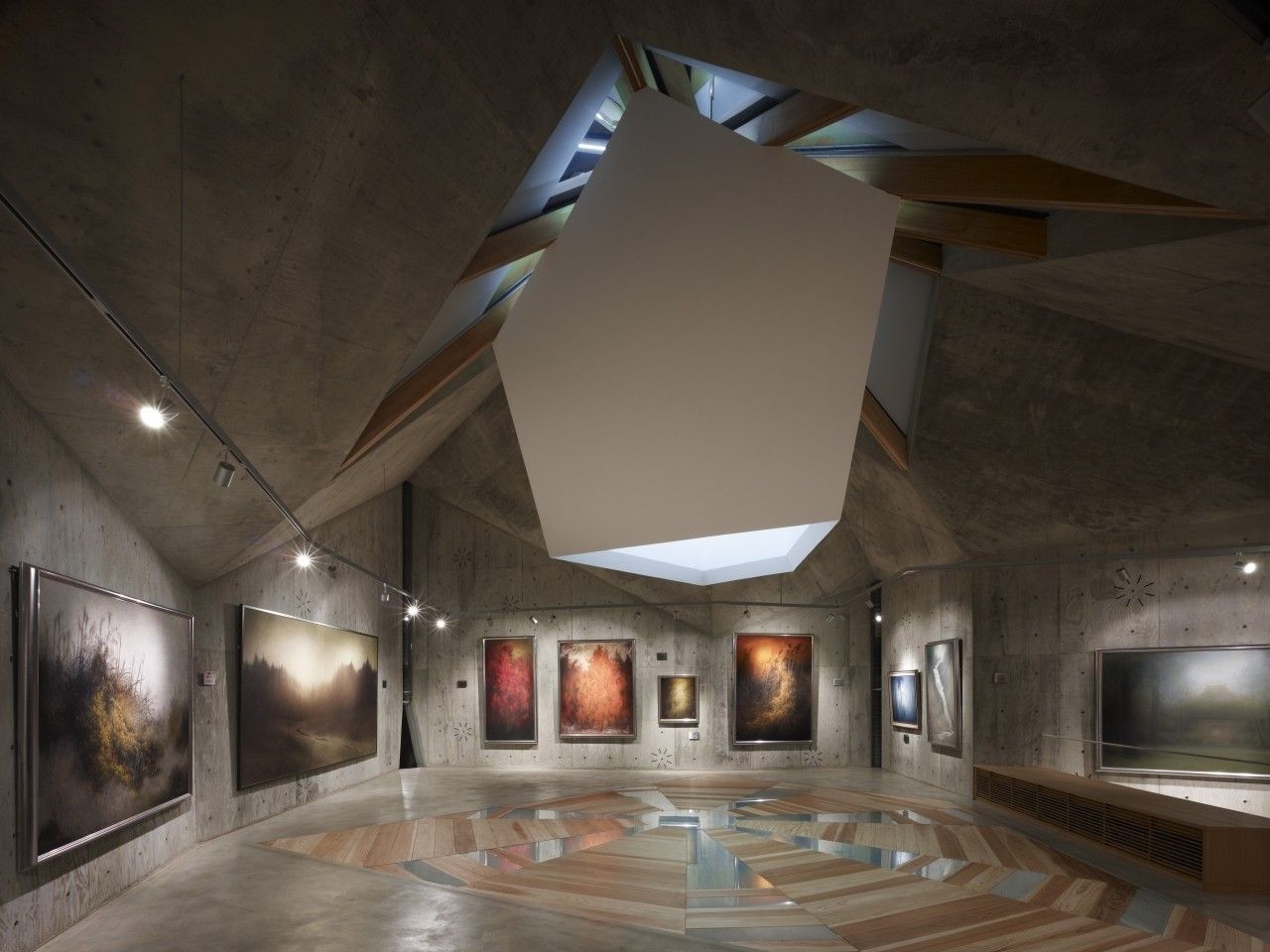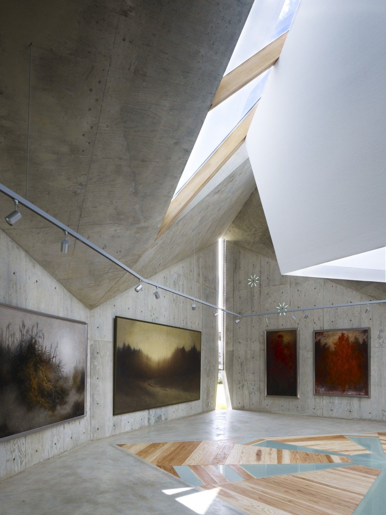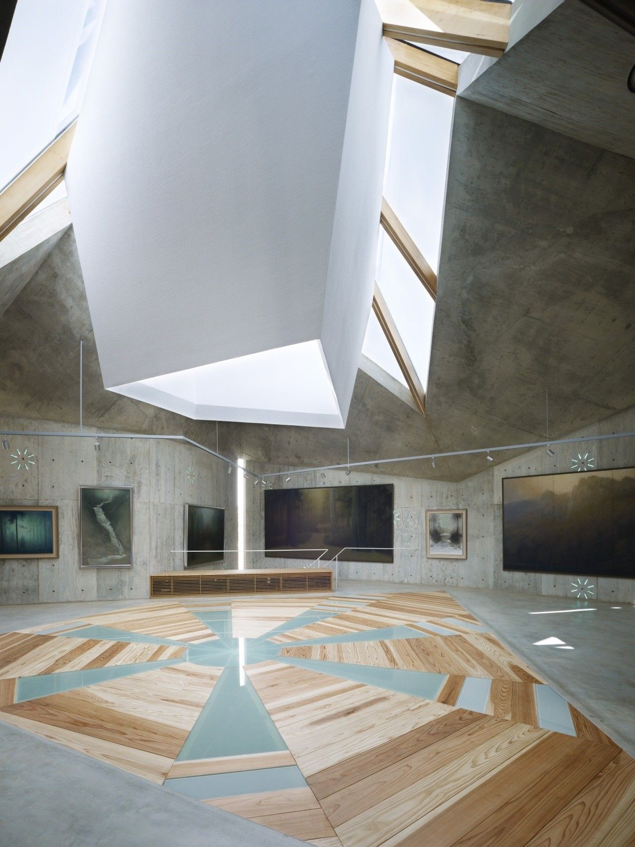 Dedicated to the exposition of the artworks of Kakudo GOAMI, whose works incorporate the many variabilities of light across the seasons and the noble spirit of the Orient, the architect took several steps to create spaces which would show the paintings in the best possible stance. The first is the structure. The building needs no interior columns, only walls as large as possible.