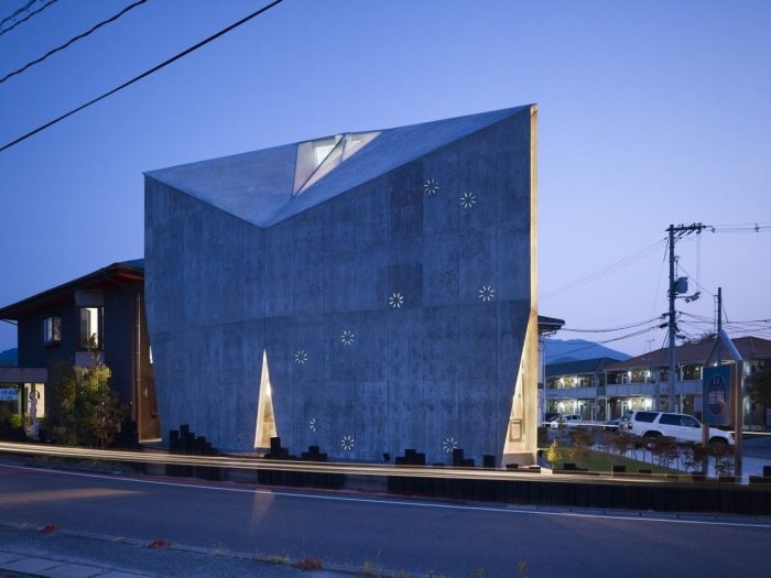 In the form of a privately owned and funded museum- the Mecenat Art Project, Naf Architect & Design creates a building of concrete which believes it is origami paper.