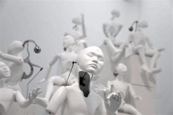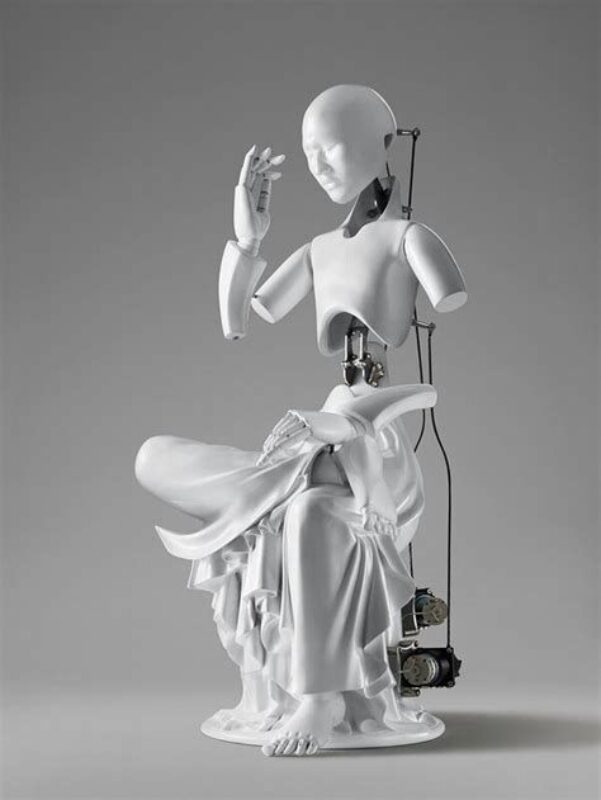 The artist considers it important to escape from human bondage in order to achieve harmony between men and machines. He thinks this harmony can be achieved through the process of religious practices and spiritual enlightenment. In Buddhism, the Bodhisattva of Compassion helps people attain enlightenment, Arhat is a spiritual practitioner of asceticism, and Buddha is a being who reaches the highest level of enlightenment. Through them, the artist intends to follow the path of enlightenment, breaking away from anxiety, agony, and pain. The artist has no intention to emphasize religious connotations through these Buddhist icons but to reflect his own or our own existence between utopia and dystopia.