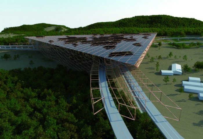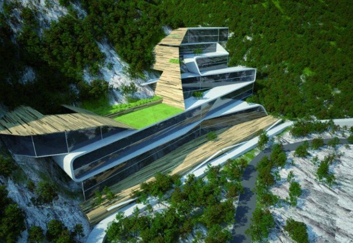 The wide range of architectures proposed give the future Eco Valley a distinctly Vitra-esque feel (I am referring to Vitra’s headquarters outside of Basel, which exists as a collection of unique architectures). There seems to be no base form from which designs build off. Instead, each construct takes its context into full consideration and maximizes its potential, whether this means residential structures built into and following the contours of mountainsides, vast production facilities which take firm ownership over stretches of flat ground, or a network of dome structures which grow out of the water, as if one is observing the Devonian evolution step of an architecture from water to land.
