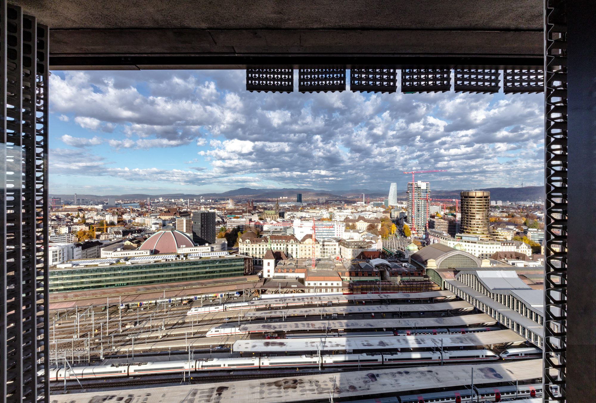 The project is part of the Südpark ensemble. In 2002, Herzog & de Meuron won the competition for Südpark organized by SBB to develop two plots situated to the south of the main train station. Both plots are closely connected with the “Passerelle”, an overhead walkway spanning the railroad tracks. Together, the Südpark (completed in 2012) and the Meret Oppenheim Hochhaus will form a new spatial context for future access to the station and to the city center of Basel. In addition, the two projects help to define the northern edge of the Gundeldinger Quarter. This densely populated area, known as the “Gundeli” amongst Baslers, has become a dynamic area of diversity and active street life.