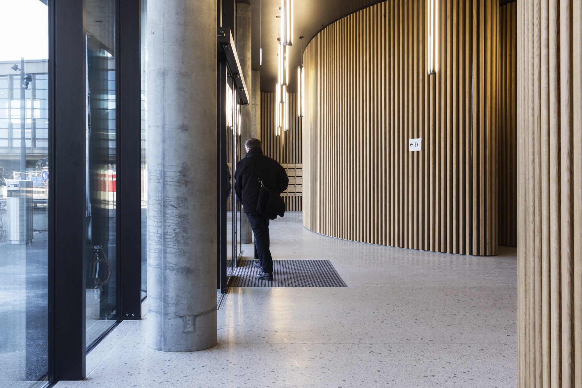 Meret Oppenheim Hochhaus, Site. SBB is one of Switzerland’s largest landowners. This national railway company owns land in prime locations of the urban centers across the country. This previously underutilized potential of real estate has been increasingly developed in the last years, thus contributing to the densification of urban centers around the main stations of Basel, Zurich, Lucerne, and other cities. Such densification and urban renewal project is the Meret Oppenheim Hochhaus, located in the Gundeldinger Quarter of Basel.