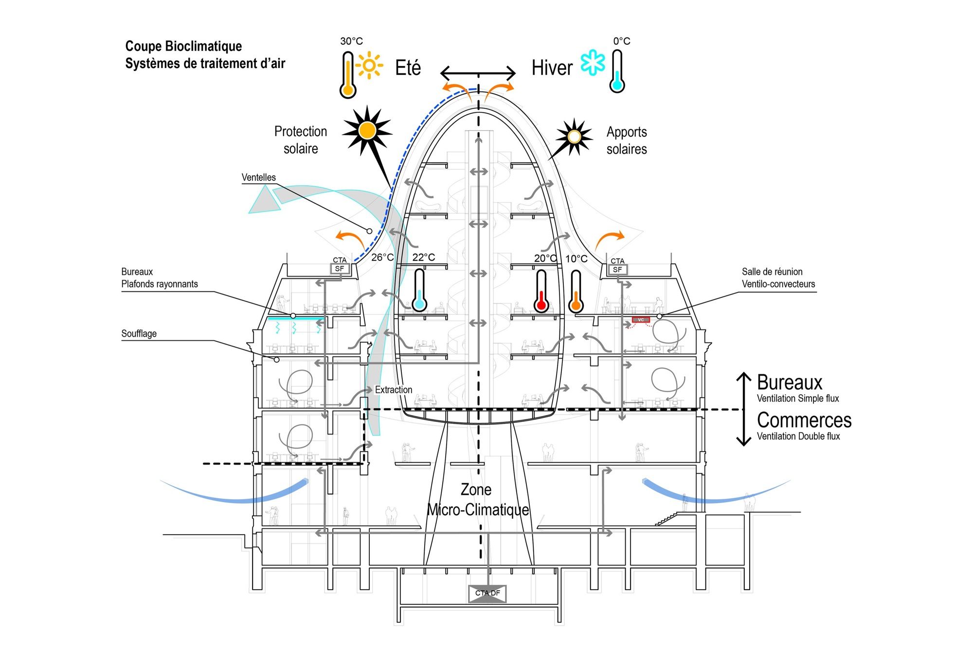 On the programmatic level, the new Hotel des Postes is organized as follows: