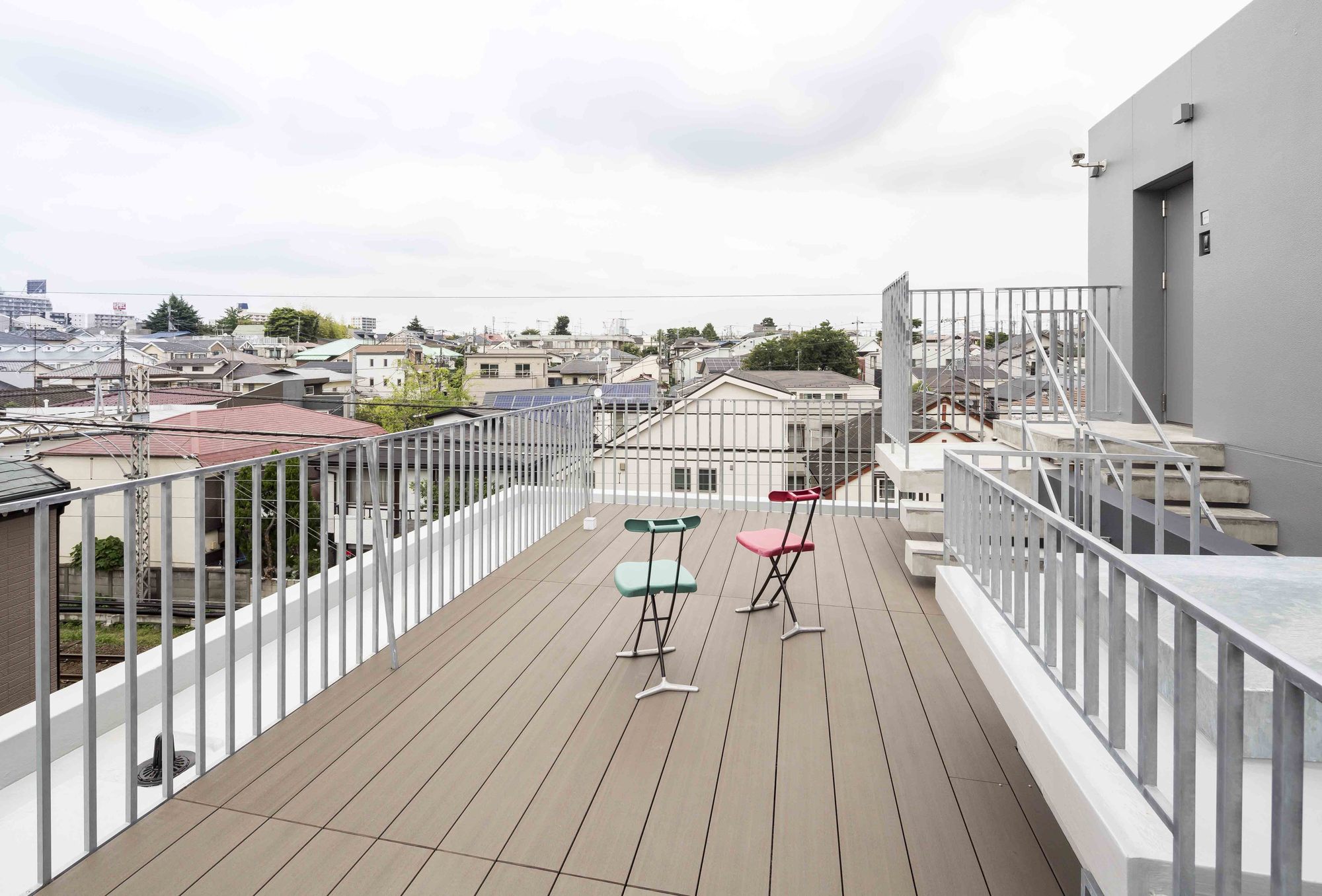 On the deck terrace of the low-rise residence, you can drink while oberving passing trains or the starts, work on your computer under the blue sky, or have a lunch party with other tenants.You can even surf the web with free wifi. As a location to work, relax, communicate, and more, it makes a great addition to any tenants life.