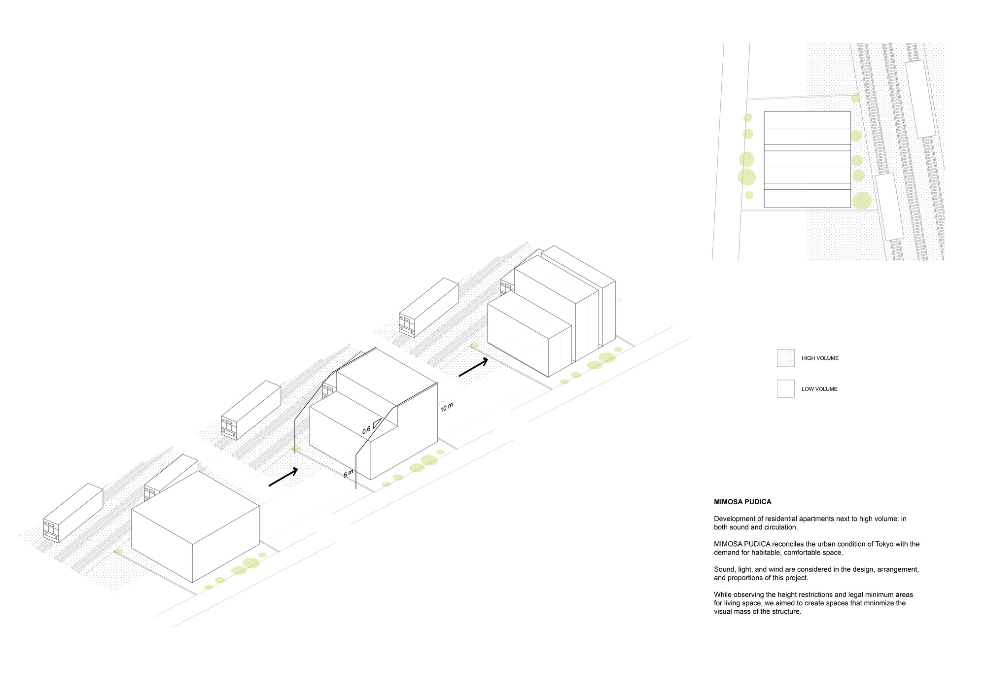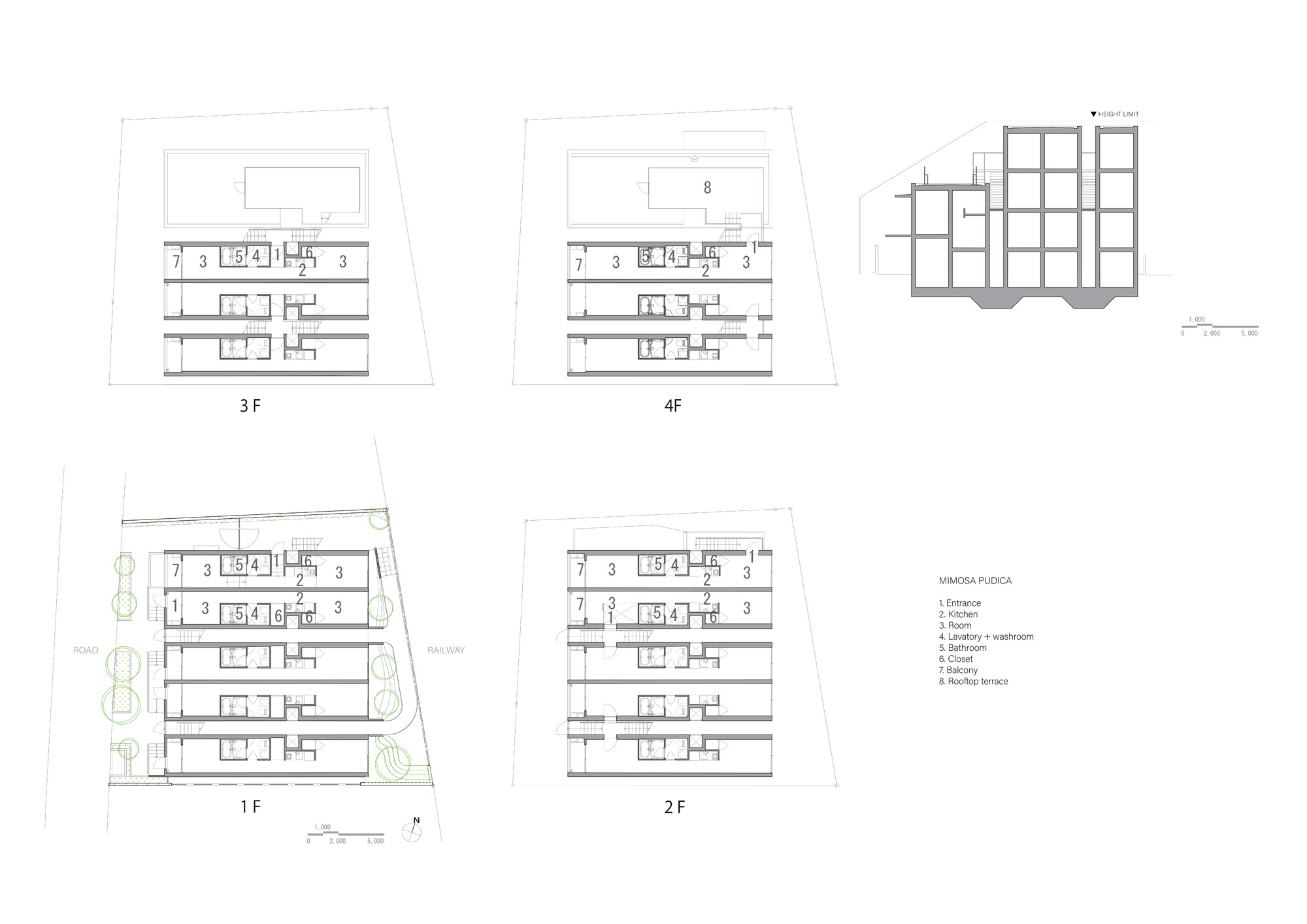 Mimosa Pudica, The apartment plot is located in a low rise residential district between a railway extending approximately 11 meters and a residential road extending 4 meters.