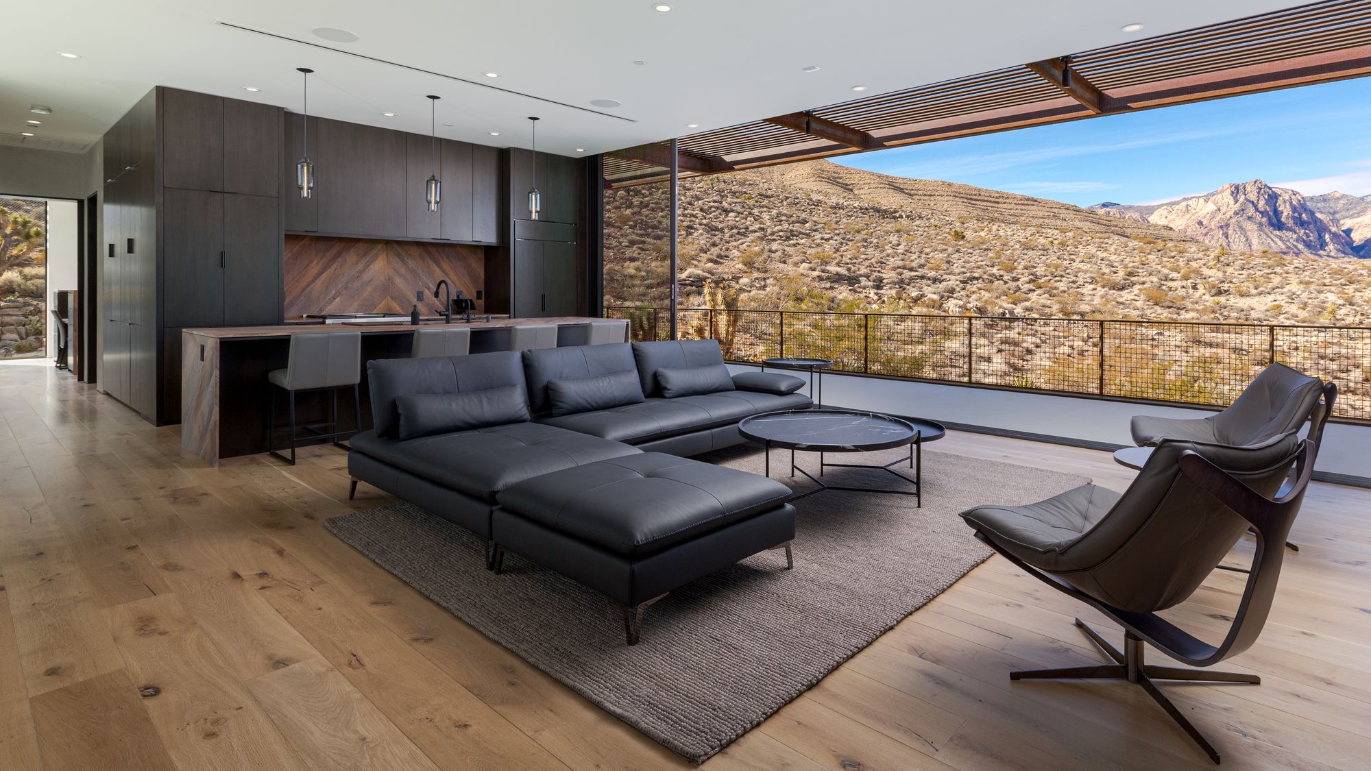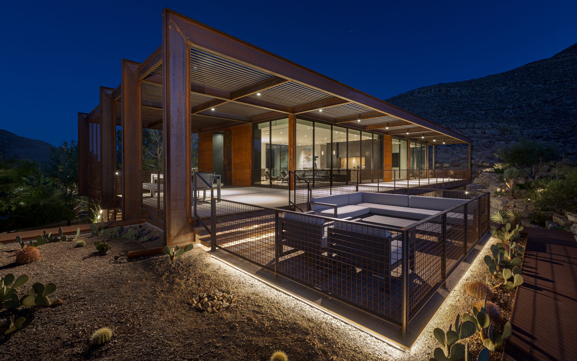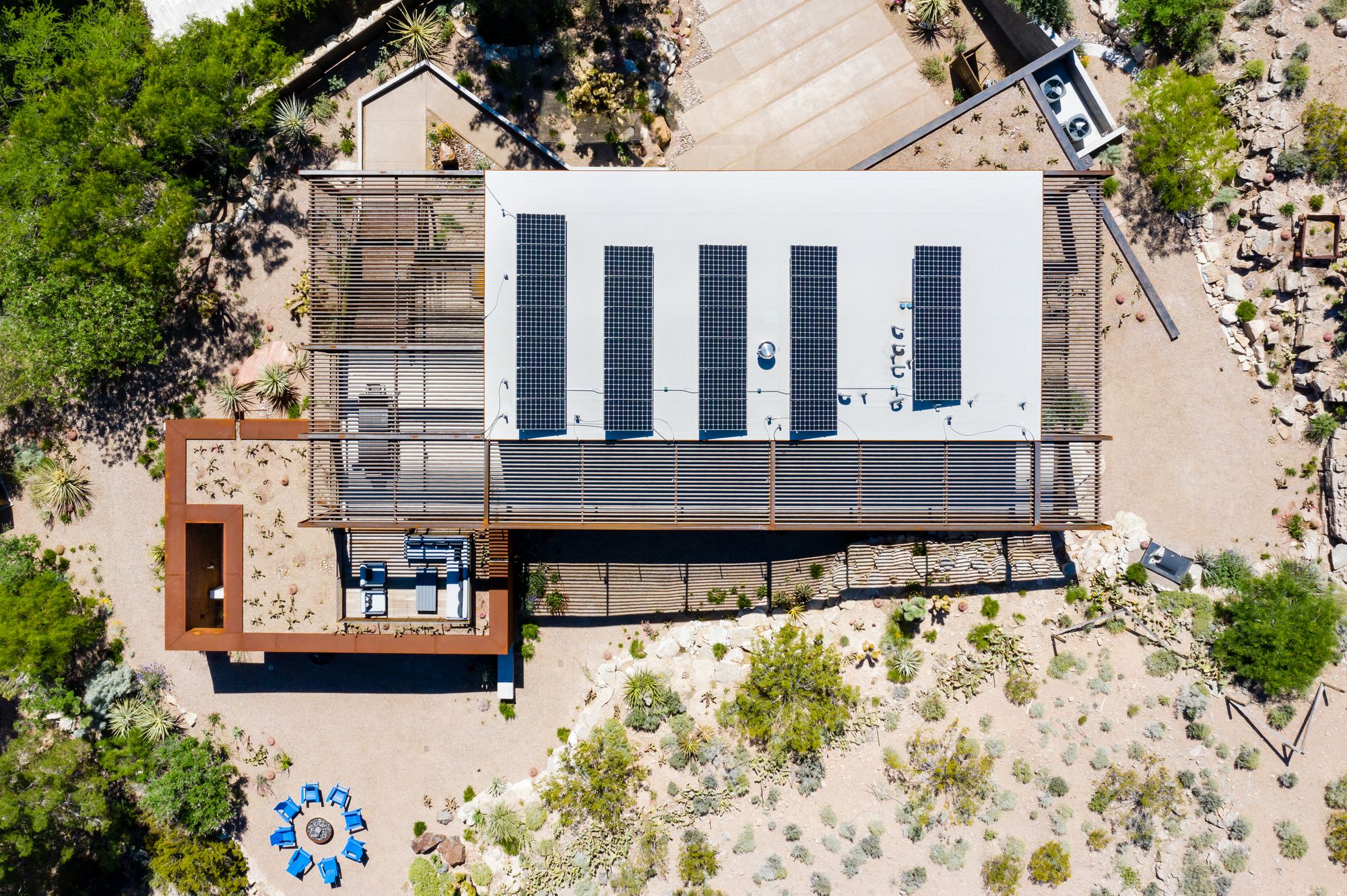 The initial question we were asked was how could we make the minimum impact on the existing lush landscape, while also maximizing the site’s picturesque views. After a few design charettes, the solution became obvious. We elevated the main section above the desert landscape, leaving the landscape below and making the views of the desert backdrop even more dramatic. This created private zones for our client and unique open spaces that could be utilized with guests.