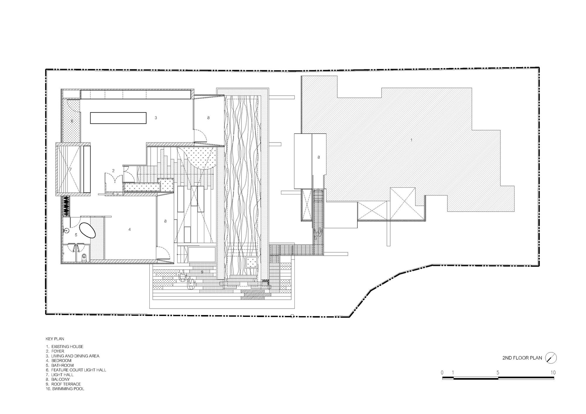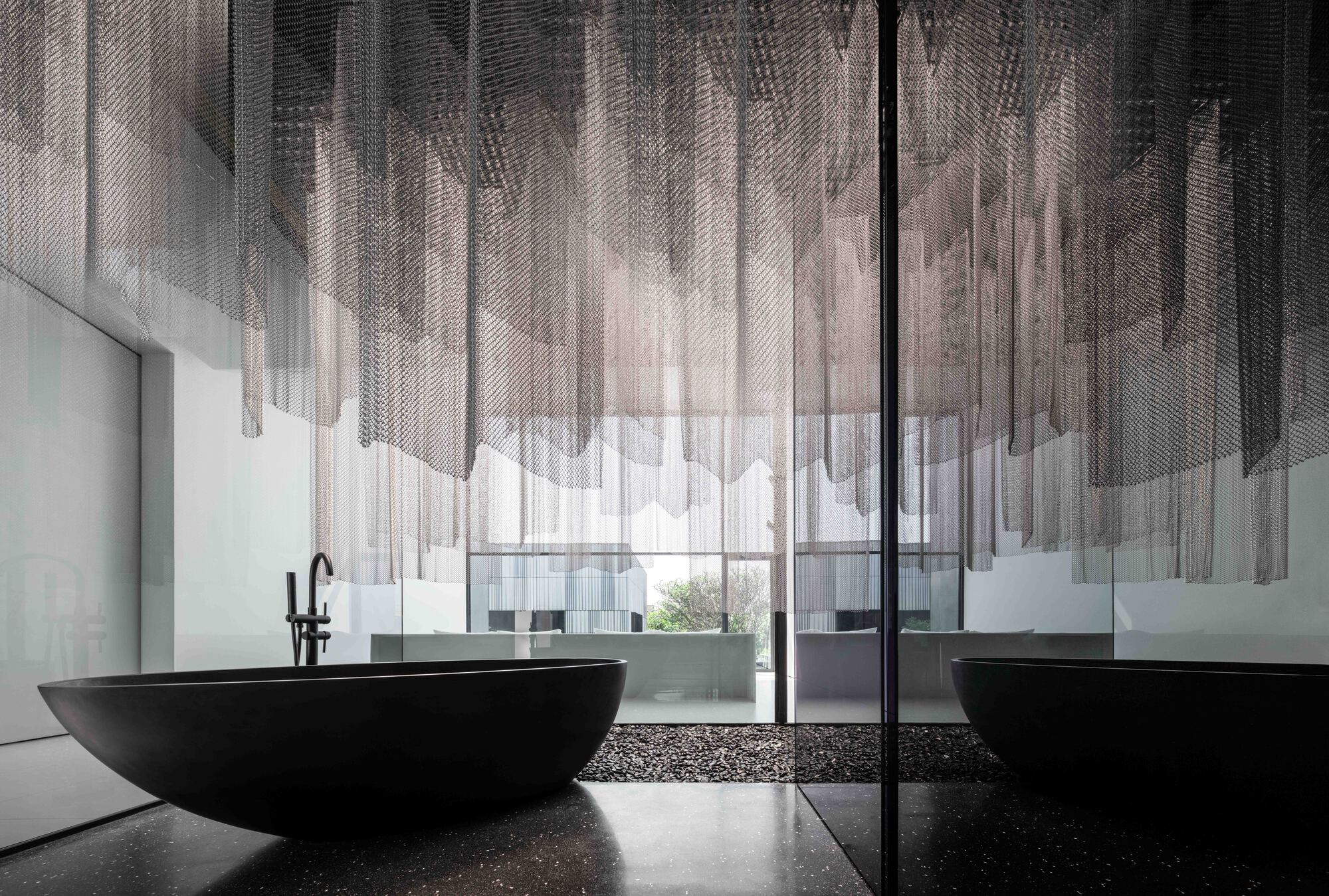 The garden doesn’t stop at the boundary wall. Given the limited size of the plot in a dense suburban development, the design borrows views of mature trees from neighboring properties, weaving them into the home’s visual tapestry. In return, MIRIN House gives back through rooftop gardens, a poolscape, and vertical greenery that soften the building’s mass and contribute to the local ecosystem.