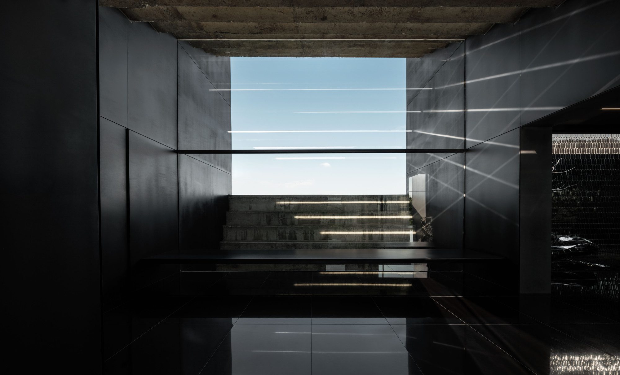 Light is meticulously choreographed like stage lighting, manipulating contrast and rhythm. From the carport to the house, light intensity gradually changes, dilating the pupils and heightening emotional anticipation. Inside, the mood shifts: darker, quieter, cooler. Natural light is modulated with deep shadows; indirect and mood lighting inside further softens the space. The result is a gentle contrast between the stimulating exterior and the meditative interior.